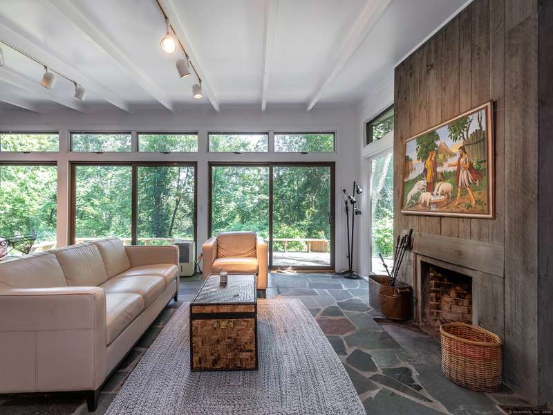 Private Estate with Panoramic Views in Coveted Kent Hollow. Tucked at the end of a quiet country lane, this rare 15+ acre estate offers stunning views, complete privacy, and timeless New England charm. Perfectly perched to overlook the beauty of Kent Hollow, the property blends refined living with the tranquility of nature. The 4-bedroom, 4 bath (2 Full, 2 Half) main residence is designed for both comfort and style, featuring a fully renovated chef's kitchen, heated mesquite wood floors, and warm gathering spaces anchored by multiple fireplaces. An Expansive deck and two screened porches create seamless indoor-outdoor living, ideal for entertaining or simply taking in the views. Adding to the appeal, a separate mid-century guesthouse discreetly positioned along the drive offers two bedrooms and two baths-perfect for visitors, a studio or whatever you desire. The landscaped grounds include vibrant gardens, fruit trees, a gentle brook, and open fields with room for a pool or tennis c