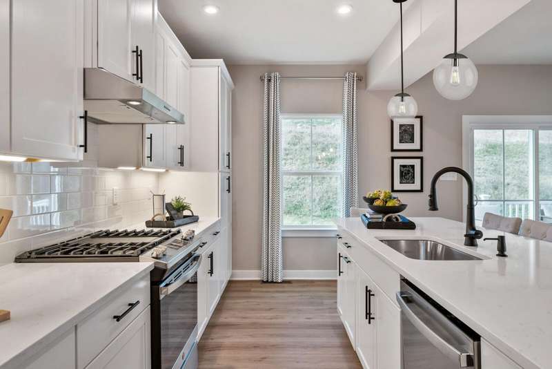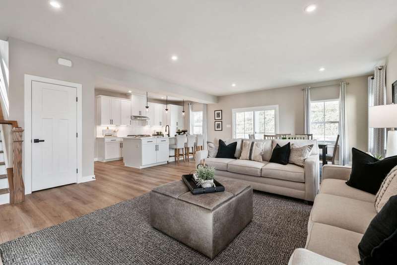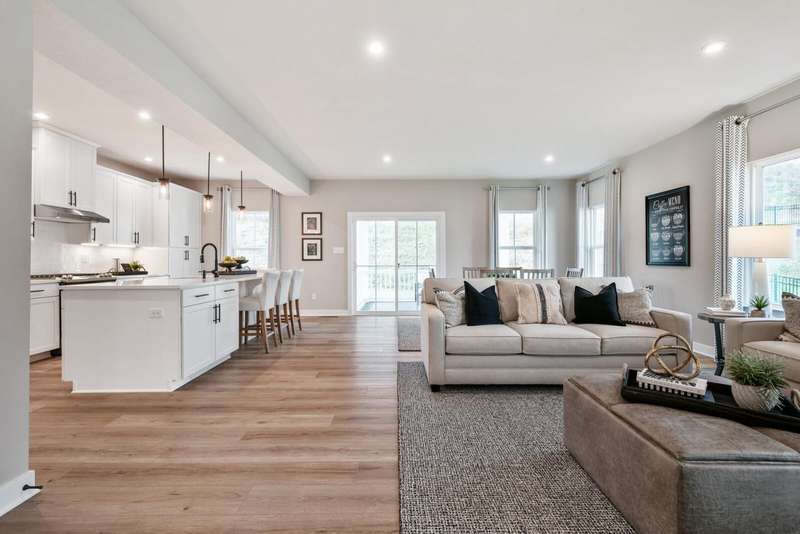 The Hudson floor plan offers 6 bedrooms and 4 baths, including a full walk-out finished basement featuring a bedroom, full bath, and rec room. Walk into an open concept design, and gourmet kitchen with quartz countertops, upgraded cushion close cabinetry, and GE Profile Series appliances, including a gas range. The primary suite is a true retreat, boasting one of the largest walk-in closets you'll find, along with a walk-in tile shower equipped with dual shower heads and Roman bench. Enjoy outdoor relaxation on both the covered front porch and the covered rear porch with Trex decking, ideal for entertaining or quiet mornings.