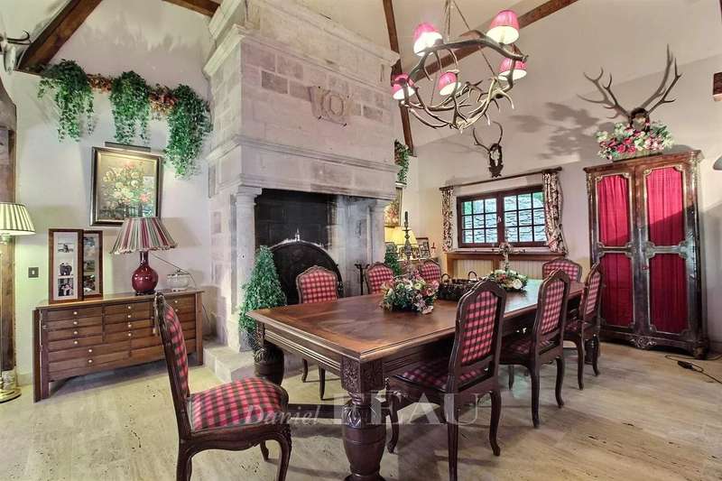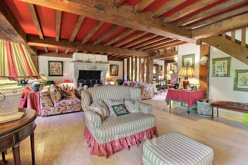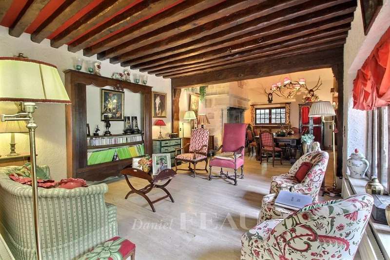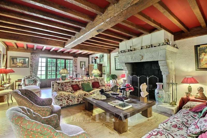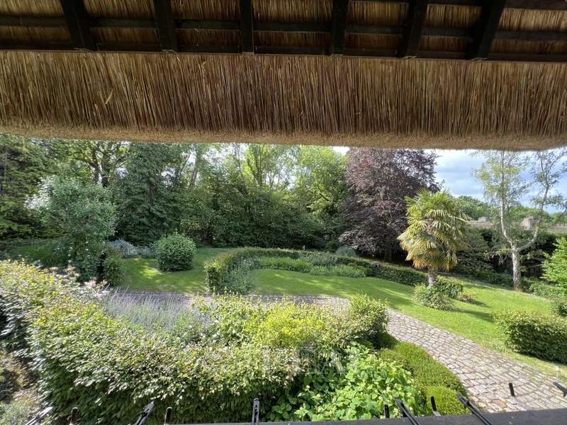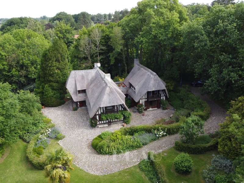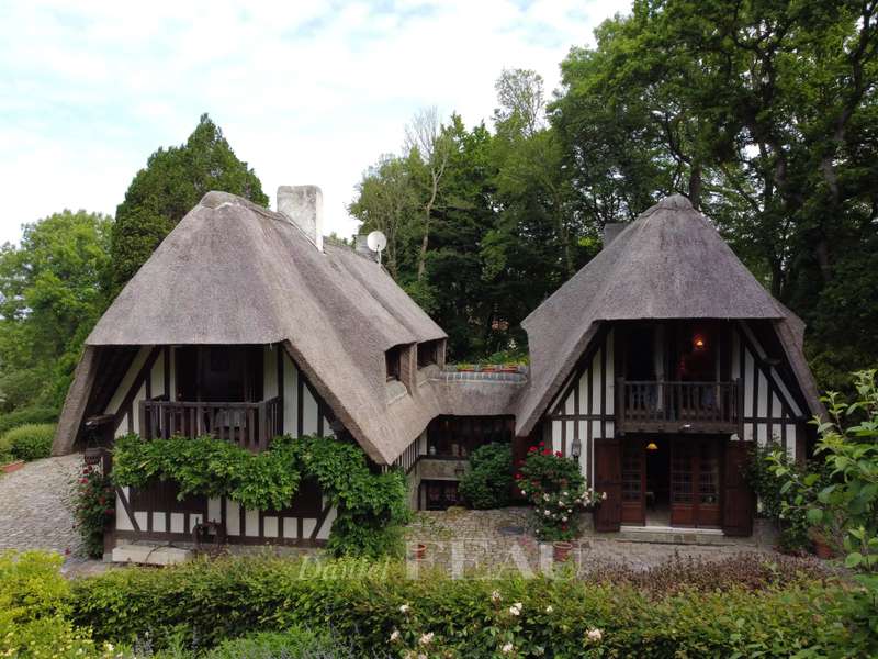 In one of the most beautiful private estates on the outskirts of Deauville, in the commune of Touques, Daniel Féau Deauville offers you a thatched cottage set in landscaped grounds of 2400 m². The house, which faces south-west, has a floor area of 327 m² (275m2 carrez) and a basement that could be converted. It comprises: an entrance hall with guest toilet and wash-hand basin, an impressive living room of more than 130 m2 comprising a fitted and equipped kitchen, a dining room with fireplace, a reading room, a double lounge also with a magnificent fireplace and a pantry. On the first floor, separated into two sections each served by its own staircase, there is a master suite with storage cupboards, bathroom and study, two bedrooms and a bathroom. On the other side are two bedrooms and a bathroom. All the bedrooms open onto a balcony, and some enjoy lovely sea views. In the basement, there is a bedroom with a water supply point, a boiler room and various rooms that could be converted with access to the outside. Lovely landscaped garden with sea views. The property benefits from an outdoor garage. Ideal family home on the doorstep of Deauville. Possibility of purchasing an adjoining 1842m2 building plot.