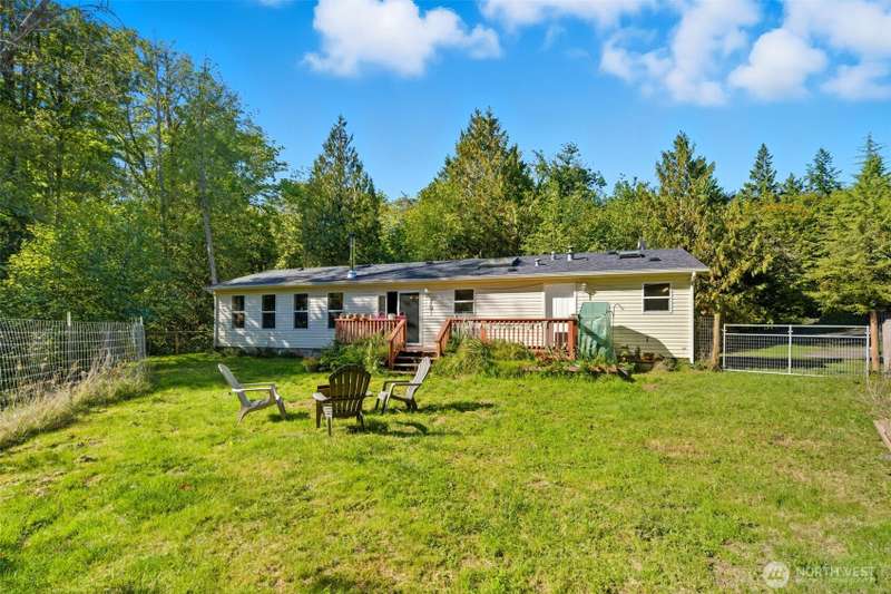 Welcome to your private retreat on 5 acres! This well-maintained home features 3 bedrooms and 2 full bathrooms with a bright, open layout. You'll enjoy both a living room and separate family room that flow seamlessly into the kitchen and dining area. The primary bedroom includes a private bath with a large soaking tub and separate shower, perfect for unwinding after a long day. Outside you'll find a fully fenced back yard along with a mix of trees, bushes, open space to explore, and so much privacy! There's ample room to build; add a shop, garage, or even a second dwelling. Enjoy peaceful, rural living with the freedom to make it your own.