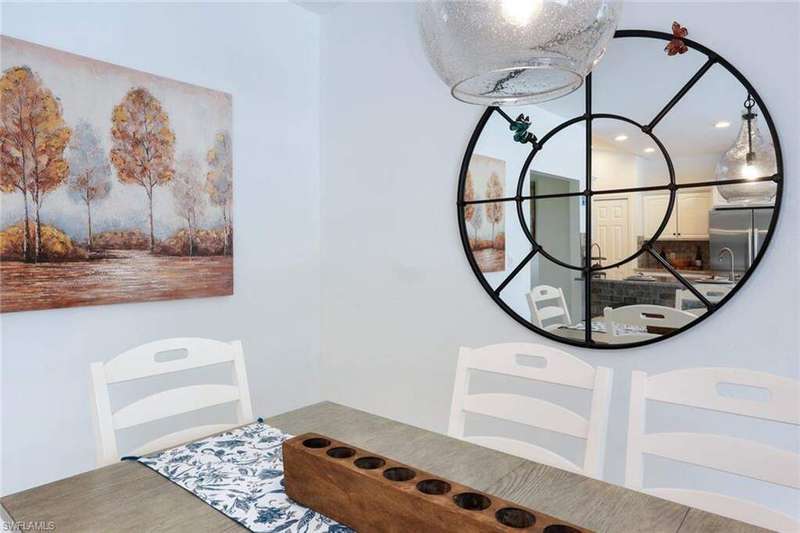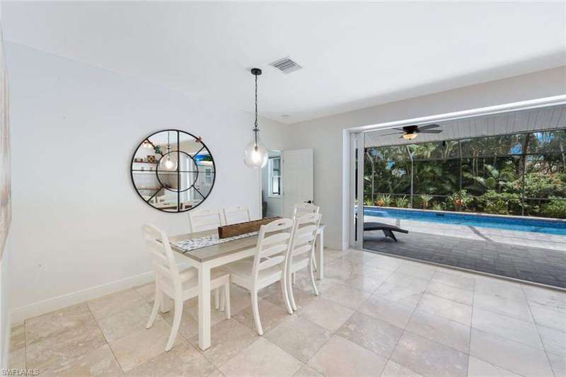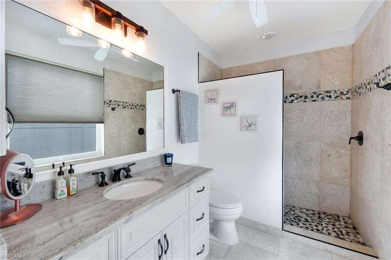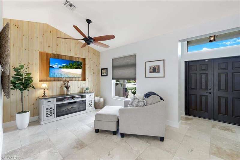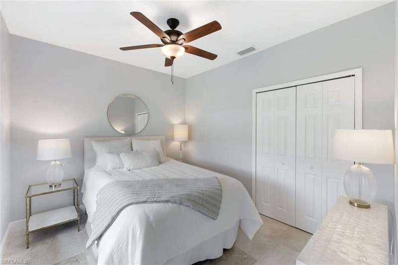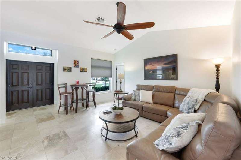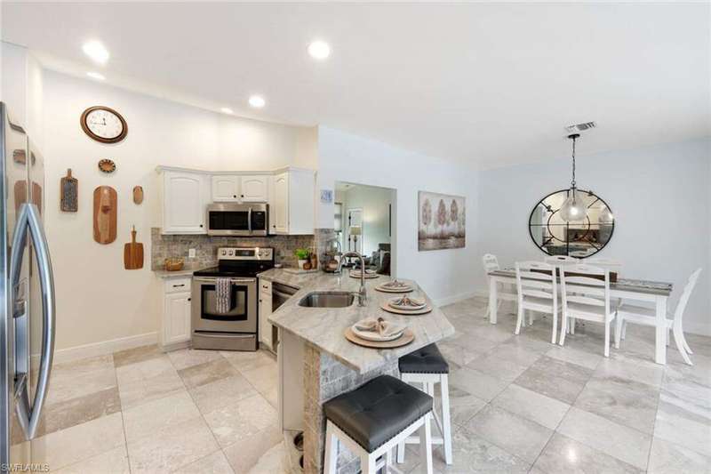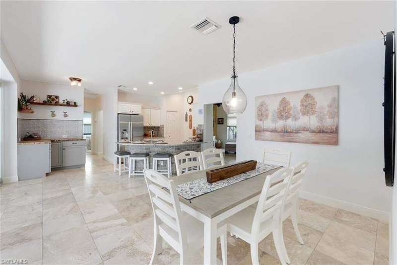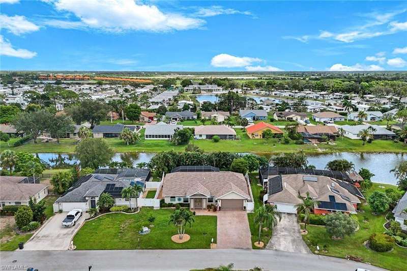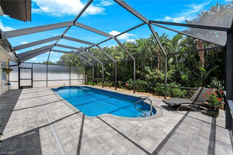 Welcome to this exquisite lakefront property in Bonita Springs, a true hidden gem within a non-gated community offering low HOA fees and unparalleled convenience. This beautifully renovated home boasts a stunning newly brick-paved pool lanai deck, a newly refinished saltwater pool, and a fenced-in side yard perfect for children and pets. Enjoy serene private landscaped views that seamlessly blend with the picturesque lake backdrop. Inside, the modernized kitchen features quartz countertops, a large breakfast bar, a Bosch dishwasher, Pentair water filter, and a beautifully finished coffee/wine bar area. The property also offers the peace of mind of a newer roof, repiped plumbing throughout, and a newly epoxied garage floor. You'll enjoy a large master suite with updated bath including large walk in shower and updated vanity with quartz counter tops. All 3 additional bedrooms are spacious and functional. Updated full guest bath that also functions as your pool bath includes updated vanity, granite countertops, new lighting & fixtures and frameless shower door. Located just minutes from downtown Bonita Springs, you'll have quick access to a variety of shopping, dining, and outdoor activities, including the highly anticipated Mid-town Bonita, Coconut Point Mall, RSW, and stunning white sand beaches. This home exemplifies both tranquility and convenience in a sought-after location.