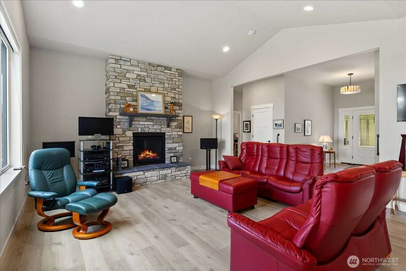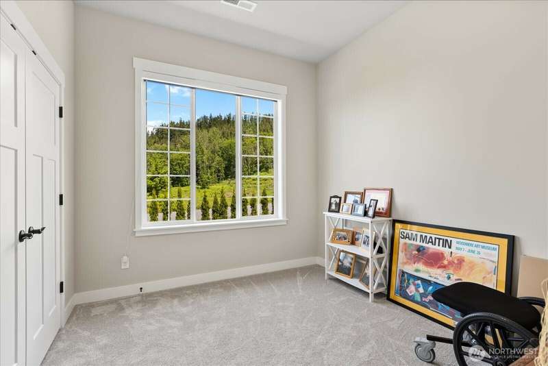 Welcome to your dream home! Better than brand new, thoughtfully designed for comfort, accessibility and style! Stunning rambler features high ten foot ceilings; spacious primary suite w/ensuite bath,2 add’l beds, bonus room for office, gym, etc. Chef’s kitchen w/walk-in pantry, high-end appliances, ample counter space. Remote control window coverings, incl blackout shades in primary. Professionally landscaped grounds, custom lookout deck to enjoy wildlife and the stream below. Custom paver pathway encircles the home, ensuring easy access to every corner. Accessibility is paramount, with ramp & railings welcoming you home. Three-car deep set garage, including one bay with an RV-height door.