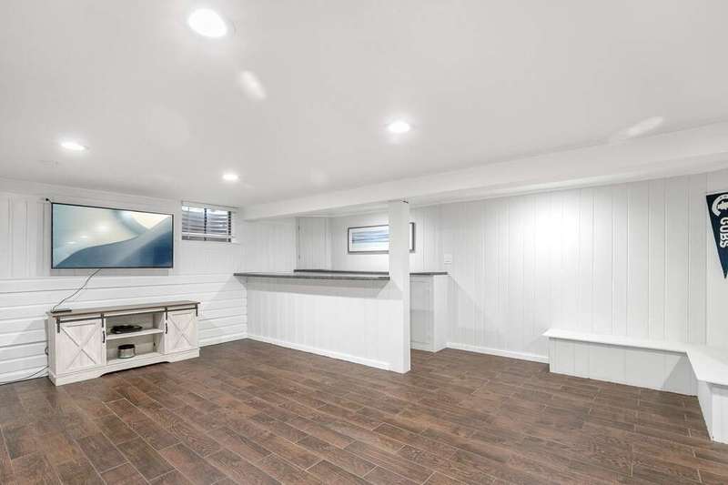 Welcome to this completely remodeled ranch-style home situated on a stunning 0.35-acre professionally landscaped lot. This home boasts numerous high-end updates and thoughtful improvements throughout. The spectacular kitchen (2022) features soft-close white shaker cabinetry, quartz countertops, a center island with breakfast bar, and new stainless steel appliances. The kitchen opens to a cozy family room with a wood-burning fireplace framed by limestone-washed brick, as well as to a spacious dining room-perfect for entertaining. A newly added mudroom offers custom cubbies and ample storage, leading to an oversized 2.5-car garage. The main floor includes two bedrooms, including a luxurious primary suite with a fully renovated en-suite bath (2022) featuring a marble shower. The completely finished lower level adds versatile living space with a third bedroom, a new full bath, a large recreation room with fireplace and bar, and a fully remodeled laundry room. Step outside to enjoy the private patio overlooking a fenced yard with new shrubs and beautifully planted gardens. Additional highlights include: radiant heat in all floors and ceilings; new exterior lightings with spot lights; refinished hardwood floors (2019); new Cedar Perfections roof and copper gutters (2015); many new storm windows (2015); new driveway (2020); new copper chimney caps and flashings (2025); and split-unit air conditioning added (2025). This home is a wonderful condo alternative and ideally located close to parks, schools, and shopping.