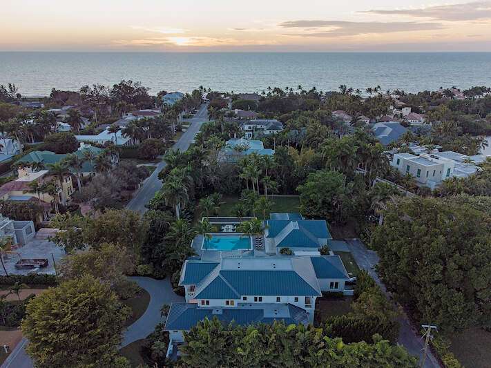 Idyllic, private-and certainly no shortage of luxurious. This uniquely rare double-lot offering provides a true "estate like" setting, is nestled a mere four doors from the beach, and was designed by Kukk Architecture & Design while having been perfectly executed by The Williams Group. In its entirety, the estate hosts 6 bedrooms, 7 full and 1 half bathroom, a loft with wet bar, and two outdoor living areas. The gourmet kitchen offers numerous top-tier features including two-tone Ruffino custom cabinetry, quartz counters, a sprawling pantry, and Sub-Zero / Wolf appliances. The exterior living environs leave nothing to be desired and include a gas fire pit, sprawling wood deck, pool with sun shelf, bocce ball court, outdoor kitchen, and multiple uncovered/covered congregating spaces. Located off of the western portion of the parcel, a detached guest house offers 1 ensuite bedroom and fitness room. Additional features include Savant Smart Home Technology System, lift and slide doors, three sets of washer/dryers, 2 outdoor summer kitchens, 2 two-car climate-controlled garages off of the alley, wine room, full-house generator, and so much more.