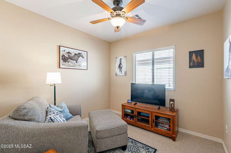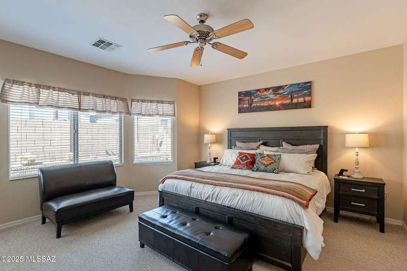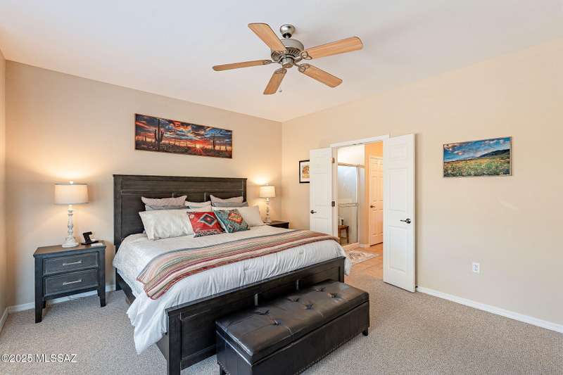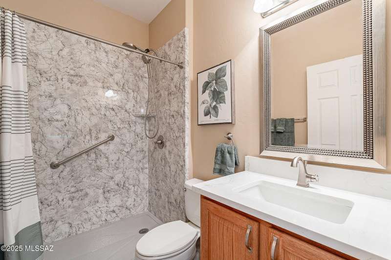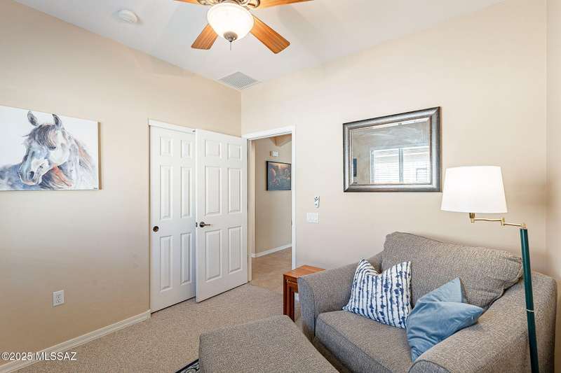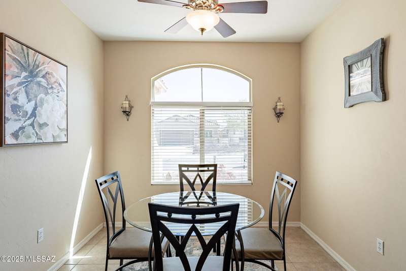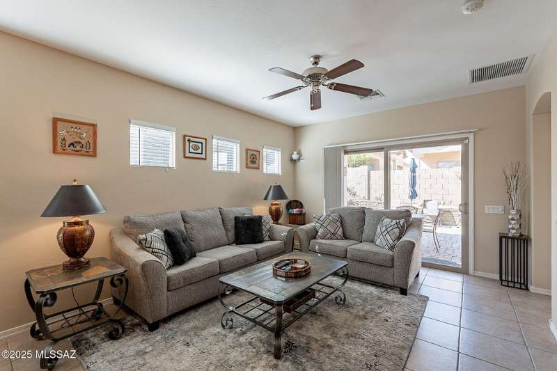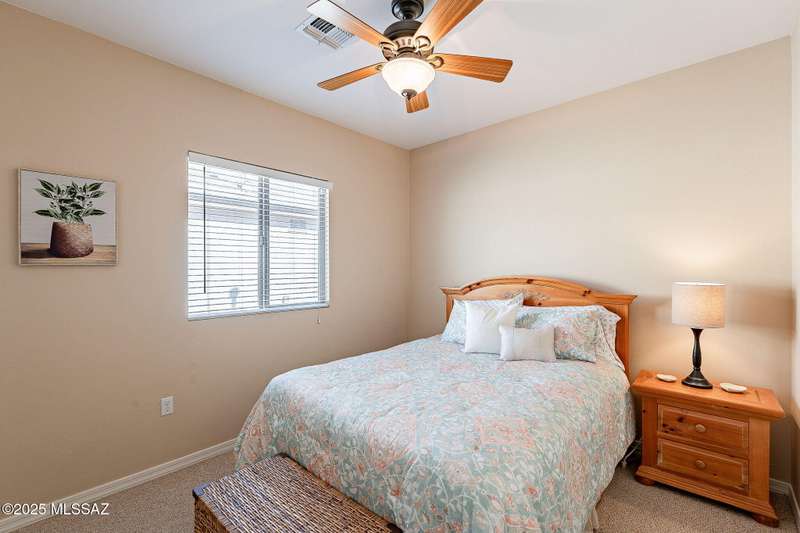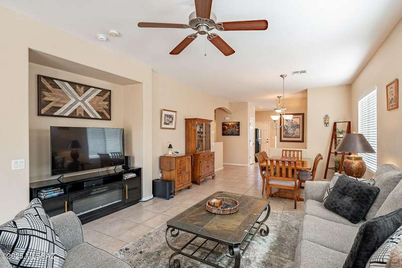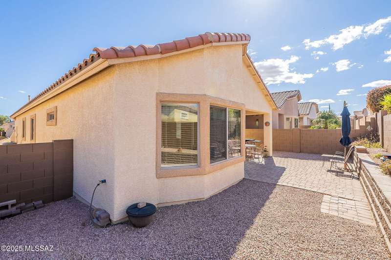 This meticulously maintained 3-bedroom, 2-bathroom home in the Del Webb at Rancho Sahuarita 55+ community is a must-see! Designed for effortless living, this home is light, bright, and move-in ready. The stylish kitchen showcases quartz countertops, a trendy backsplash, and a charming farmhouse sink. Both bathrooms feature quartz countertops, with the guest bath recently upgraded to include a stunning custom shower. Tile flooring flows throughout the home, with cozy Berber carpet in the bedrooms. Outside, relax in the spacious backyard with extensive pavers designed for minimal upkeep. The community clubhouse is just moments away, offering Pickleball, a pool, spa, and a well-equipped weight room. Schedule your showing today!
