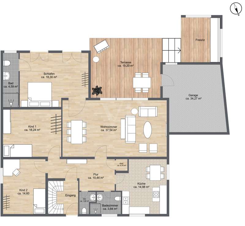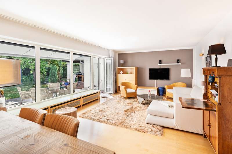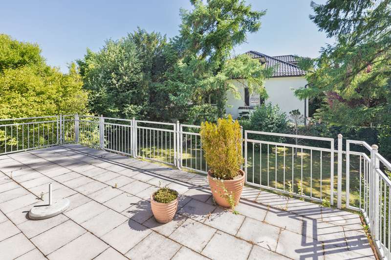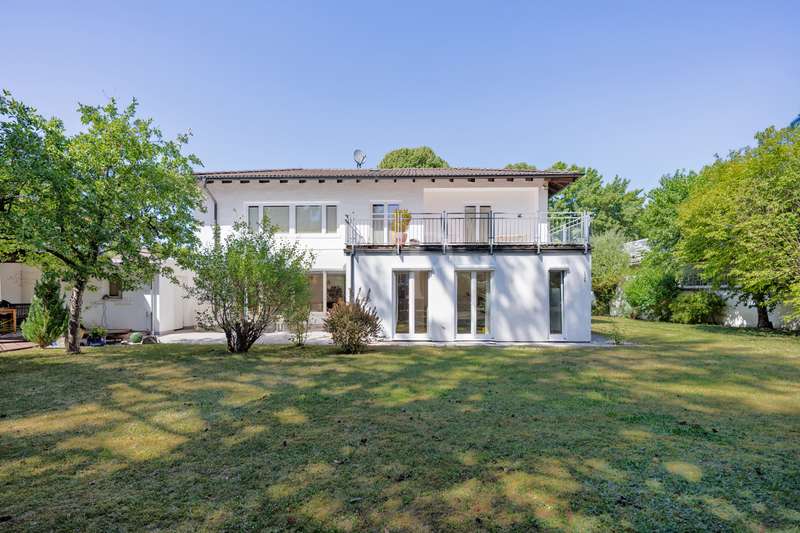 This lovingly maintained two-family home from 1960 combines spaciousness, security and versatile usage options under one roof. With a living space of around 253.78 m² and a sunny plot of approx. 886 m², it opens up numerous options - perfect for two families or for living and working in harmony. The first floor is in a well-kept condition. The centerpiece is the spacious living and dining area, which impresses with plenty of natural light and an open atmosphere - an ideal place for family life, conversations and cozy hours. Two children's bedrooms and the master bedroom offer space for retreat and relaxation. The master bedroom is located in the extension, which was built in 2000, and has its own comfortable en suite bathroom. There is also a separate daylight bathroom and a guest WC. The terrace, which is directly adjacent to the living room, provides access to the wonderfully green garden - perfect for relaxing afternoons, sociable evenings or breakfast al fresco. On the upper floor, you will find an independent living unit with its own kitchen and a spacious living/dining area, which is flooded with light thanks to the large windows. From here, you have direct access to an extremely spacious loggia terrace - a wonderful place to take a deep breath, sunbathe and enjoy, almost like a roof terrace. Two further rooms can be used flexibly as bedrooms, offices or guest rooms. The second residential unit as a whole is in need of renovation, which gives you the opportunity to design it individually according to your ideas. A bathroom and a separate guest WC are also available here. The house has a full basement and offers plenty of space for hobbies, storage, a workshop or housekeeping. There is a garage for your vehicles and an additional parking space in front of the house. The well-kept garden with extensive lawn invites you to live outdoors - whether for playing, gardening or simply relaxing in green surroundings. The location is quiet and family-friendly, but also very well connected: Shopping facilities, schools, kindergartens and the S-Bahn are all within easy reach - ideal for a relaxed, well-organized family life.
