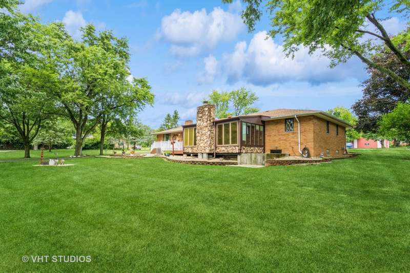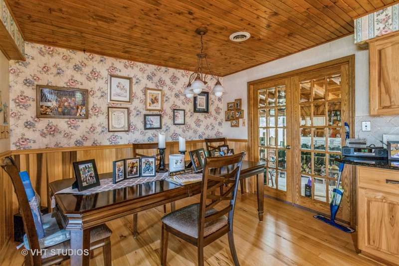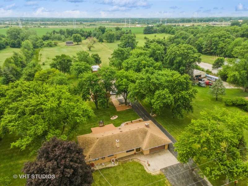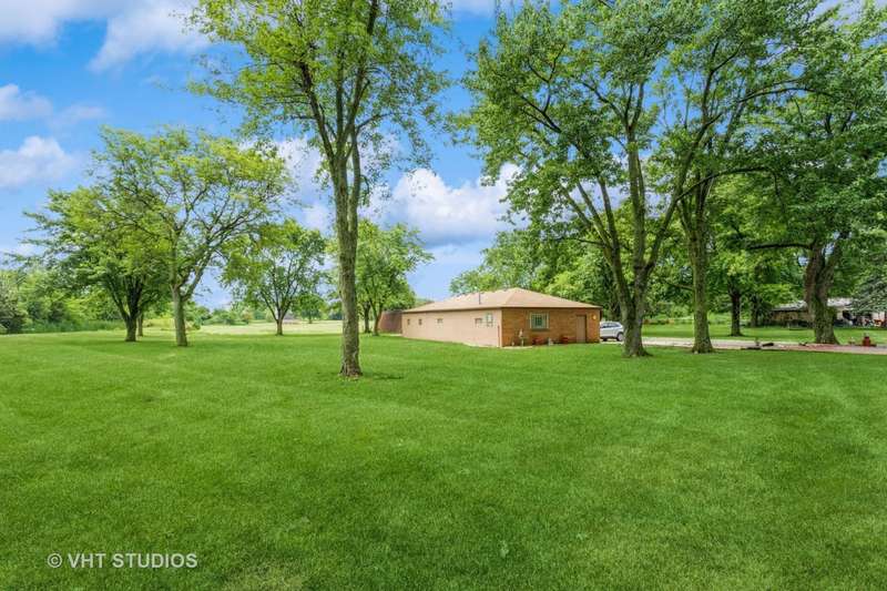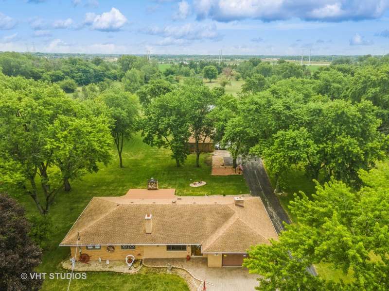 PLEASE CALL THE LISTING AGENT TO ACCESS THE PROPERTY. Unbelievable opportunity!!! Country living. 8 level ACRES of property with a solid brick ranch home with a 2 car attached garage. There is a 5+ car detached garage, an additional outbuilding plus an older barn near the back of the property. Beautiful mature tree scattered on the property gives shade relief in the summers. The home was built in 1968 by the owner. He owned a brick company and this home is very solidly built - along with the 5+ car garage. Being sold as is, although no major concerns expected. The home has an open concept living, kitchen, dining area. The kitchen has very nice updated and maintained cabinets with beautiful black granite countertops, an electric double oven with an electric cooktop stove and the dishwasher were all done approx. 15 years ago. The refrigerator is 8 years old. The wood ceilings throughout the living areas of the house are gorgeous. The 3 great sized bedrooms have plaster ceilings. The main hall bath has been updated with vanity, countertop and a tiled walk in shower and floor. There is a half bath off the back door hallway near the amazing family room, garage entrance door and the basement stairs. There are 2 wood burning fireplaces (living room and family room) - and 1 gas fireplace in the sunroom just out the beautiful beveled glass french doors in the dining room. The sunroom was used as a salon, so water supply is already there if a wet bar was wanted in that room. A separate door entrance goes to the back deck and brick patio area. All windows were replace about 25 years ago, so they are not the original ones. The well and septic systems are routinely maintained with no concerns. The shingle roofing was replace 12 years ago. The boiler for the hot water heating is only 5 years old. The mostly finished basement had US water proofing done years ago, although the basement has never had water in it. There is a large walk in shower in the basement also. A nice big office area with fantastic custom brick walls, a great living area, a wall of closets for holiday decorations or whatever you want storage in the laundry room. An additional storage room is large for larger storage items and the boiler area is also large. The walkout stairway to the backyard makes for great access in & out of the basement. The property is level with tons of parking. The pasture space in the back of the property would be great for horses and/or farm animals. The barn at the back of the property is old and needing repair but could be good for storage or animals. The property backs up to a large open field.This wonderful home and property is true country living, yet nicely located near the expressways, Silver Cross Hospital and the new Sports facilities. A fantastic opportunity for anyone wanting the best of everything. NOTE: The vacant 2.66 acre lot to the west of this property listing is also listed separate MLS #12146896 - price $219,900. It can be sold independent from