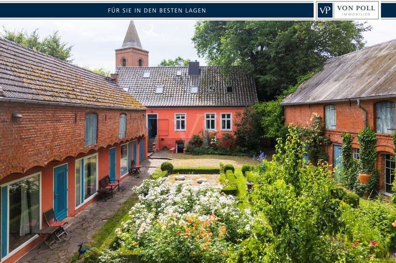 A place of peace and tranquillity - far away from the hustle and bustle of the city, here you will find the oasis that so many people are looking for. Take a deep breath and arrive, enjoy life in its purest form and draw on the power of nature - here you can start a new phase in your life. The farm was previously used as a small seminar house, but offers plenty of space for other creative usage concepts. This farm has been carefully modernized with great attention to detail and respect for the old walls. The typical layout of the four-sided farm has been retained, with four buildings surrounding a landscaped courtyard. The original farmhouse has been preserved as a residential building: Two bedrooms, two bathrooms, a guest WC, a dining room, a living room and a kitchen are spread out on the first floor and provide a cozy retreat for the residents. The upper floor has been converted into a large meditation room with roof-high ceilings - here you can plan a completely new room layout to suit your needs. A small guest WC with shower (perfect for smaller people ...) and a guest room are already available. The original stable building has been converted into a tasteful guest house: Three beautifully designed rooms with en suite bathrooms and underfloor heating - your guests will sleep like on clouds here. The barn at the front, with its whitewashed walls and high ceilings, provides a wonderful backdrop for farm parties, weddings or as a playground for the children. The large gate opens onto an idyllic terrace with a view of the Havel and the Havel meadows. Here you are very close to Germany's first star park - the stars and Milky Way shine brighter here than anywhere else. The adjacent barn has been used as an exhibition venue in recent years - the high ceilings, whitewashed walls and steel beams create a very special atmosphere here too - the rustic charm of country life is in every corner! The courtyard offers: A sauna, a large covered terrace, the inner courtyard with herbs, grasses and roses in all shades. The many small places of encounter and contemplation seem to be the best place to really breathe, feel and live life. Another highlight: a natural swimming area directly behind the courtyard invites you to refresh yourself on hot summer days.