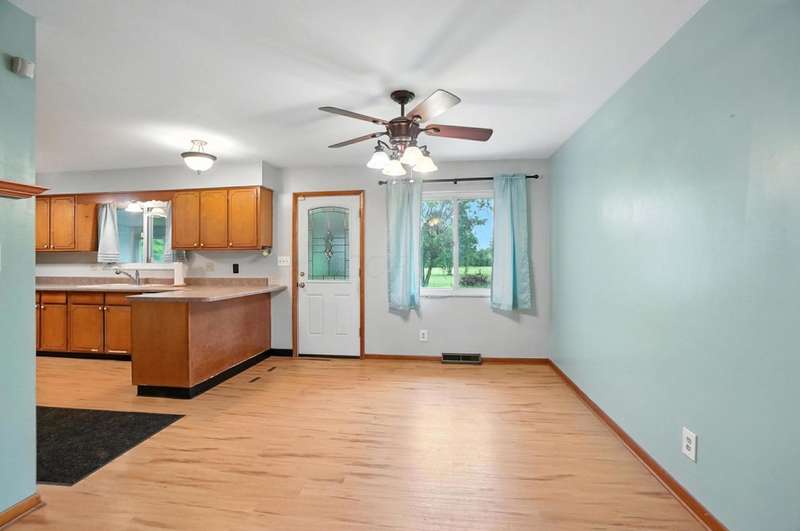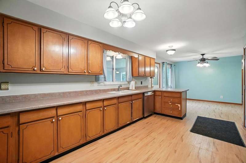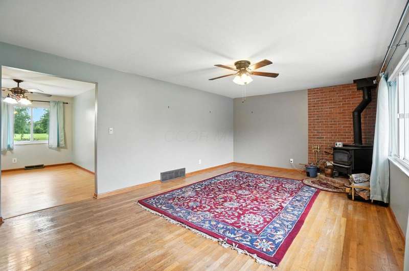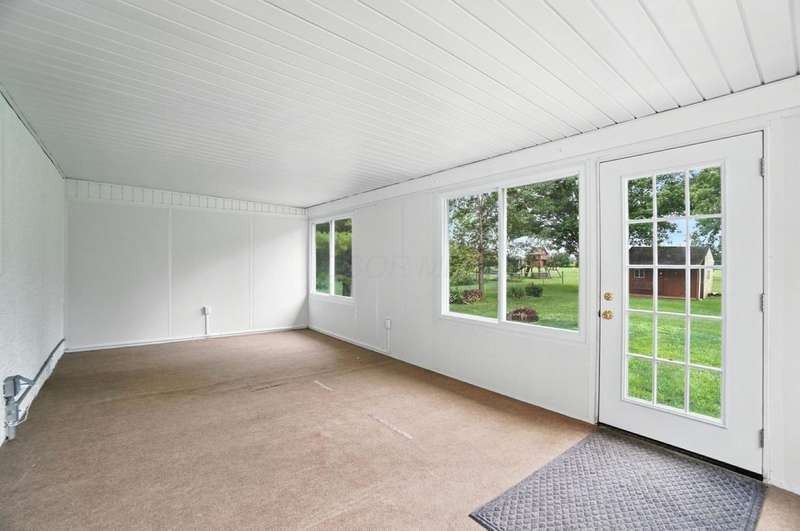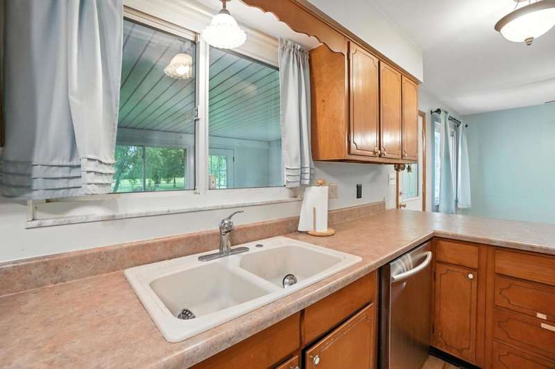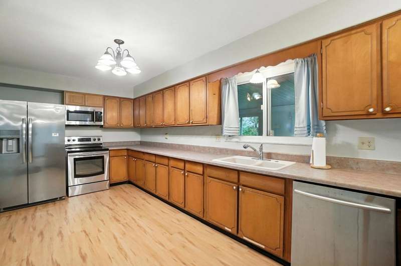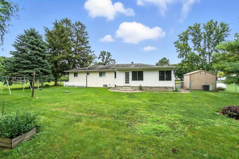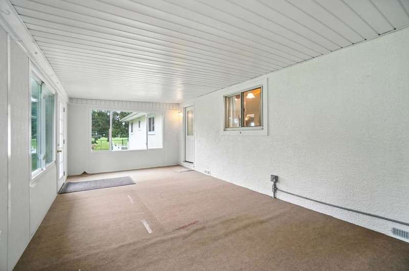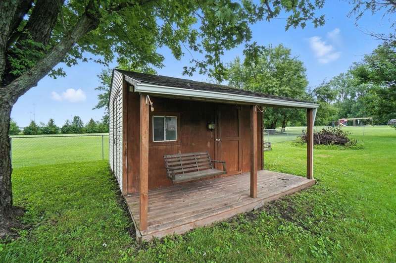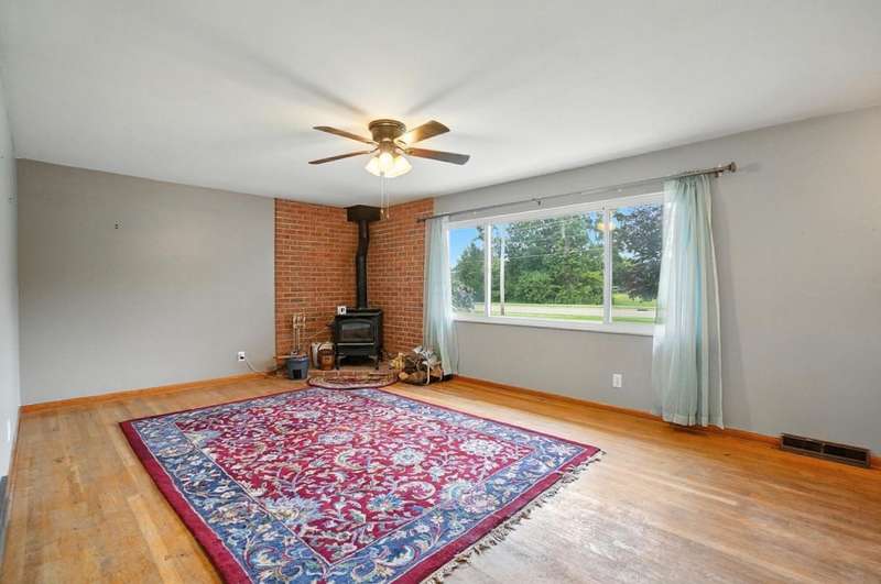 Welcome Home to This Spacious Ranch! Discover charm & potential in this stucco & stone ranch that offers a 3 BR, 1.5 bath. kitchen features ample counter space & storage. Enjoy cozy evenings by the wood-burning fireplace in the living room, host dinners in the dining room or relax year-round in the 4-season room. Laminate floor in kitchen & dining room with hardwood flooring underneath and throughout the home, ready for you to refinish to your taste. Full basement with walk-out that leads into a spacious, fully fenced backyard perfect for entertaining, relaxing or letting pets roam freely. An adorable shed with 220 electric and its own porch adds charm and extra storage or workspace potential. The front yard offers beautiful curb appeal, complemented by a large driveway and an additional shed for convenient storage. Don't miss this perfect blend of functionality and charm! Showings start 8/22/25.