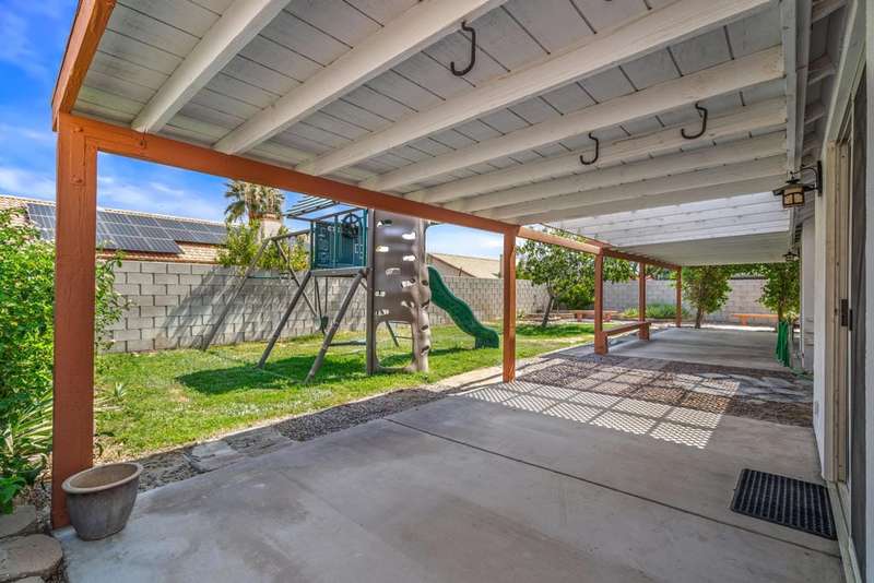 Awesome 4 Bedroom 2 Bath single level residence in Century Park neighborhood with no HOA or MELLO ROOS. Livingroom/Dining room combo with vaulted ceilings, new upgraded ceiling fans and attractive fireplace. Family room adjacent to Kitchen that features Oak Cabinetry, granite counters, new Frigidaire 5 burner S/S gas range/oven with air fry, new S/S fan hood, new S/S dishwasher and tile flooring. Newly painted Interior. Private pool sized rear yard great for entertaining with open beam patio cover and block walls. 2-car attached garage with built-in shelfs and direct access. Home is conveniently located with EZ access to schools, park, shopping and restaurants. Buyer to assume Production Lease Solar Contract.