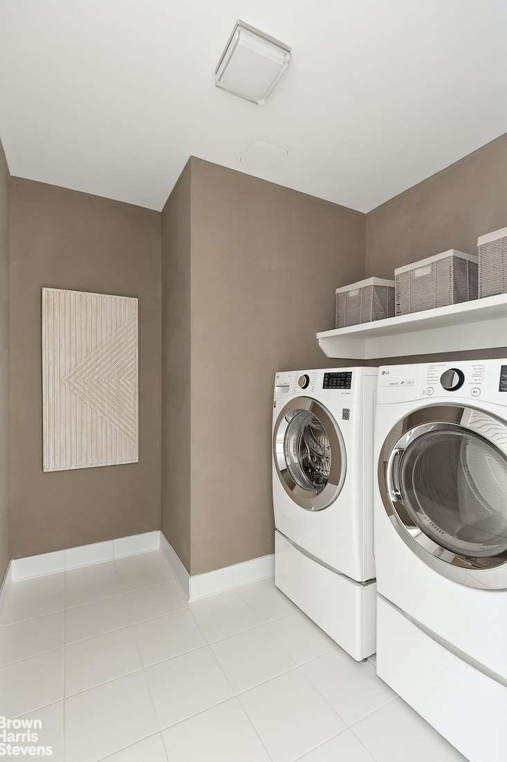In addition to aesthetics, the focus on comfortable living is echoed throughout this special residence. There is elegant art lighting, as suburban-sized laundry room with a vented dryer, powder room and designated Nest controls in each room.