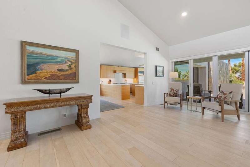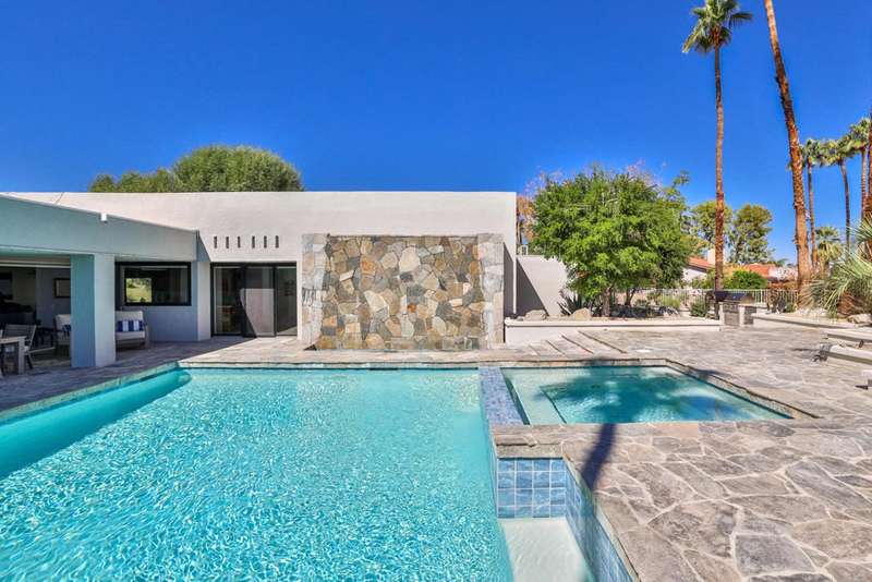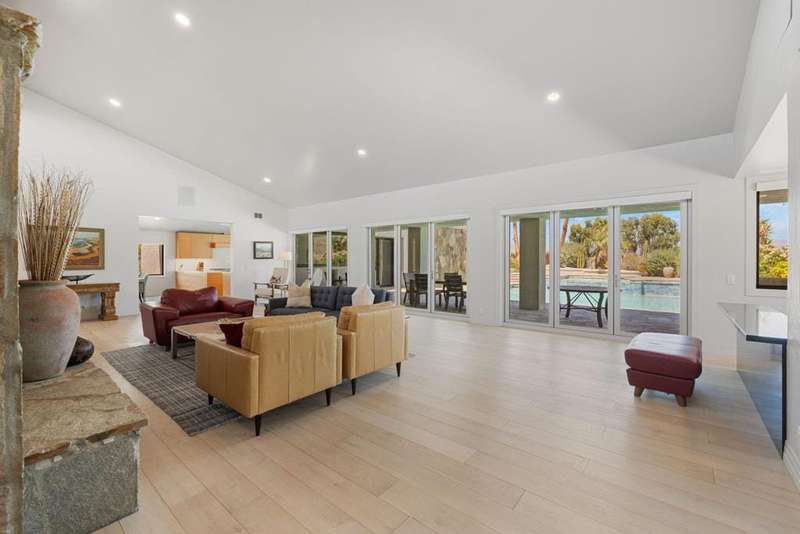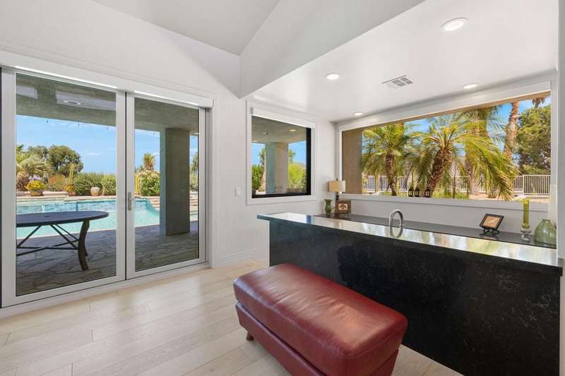 Custom Estate Home on 1/2 acre in the heart of Ironwood Country Club. Private setting with mountain views and serene gated grounds. Enjoy the outdoor amenities of pool & spa, waterfall wall, putting green, built-in BBQ, misters and lush landscaping. Fabulous Great Room features include Quartz stone fireplace wall, high ceilings with clerestory windows and bar area with floor-to-ceiling wine cabinet, icemaker & fridge. Enjoy cooking & entertaining in the spacious custom kitchen featuring SubZero fridge, Wolf 6-burner range, white oak cabinetry and Quartz counters. Large laundry room is adjacent to the kitchen. Doors & windows are updated and flooring is white oak engineered wood and slate stone entry hall.4 bedrooms 4+ baths with 3-ensuite bedrooms and detached casita with bath. The Primary suite has fireplace and luxurious bath with his & hers vanities & 2- cedar lined walk-in closets. Guest suite also has fireplace and there is a 3rd bedroom off the kitchen area. The bedrooms are nicely separated and each has a patio area. Multiple patios with different sun orientation allow outdoor enjoyment any time of the day. In addition to a separate entry casita there is an office plus a media room/den. The attached 3-car garage has custom flooring. This home comes equipped with a fully-owned solar panel system meaning lower electric bills and energy independence. Simply put 'this home has it all' and is offered furnished per inventory, Ironwood is a private member-owned country club with 2-great golf courses, tennis, fitness, pickleball and dining. Use of Club facilities is limited to members.