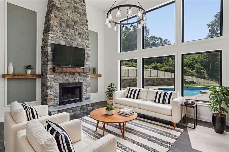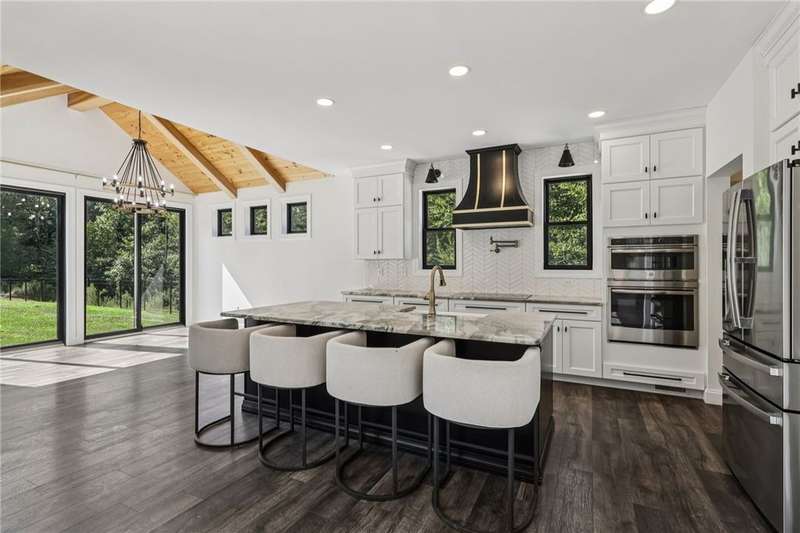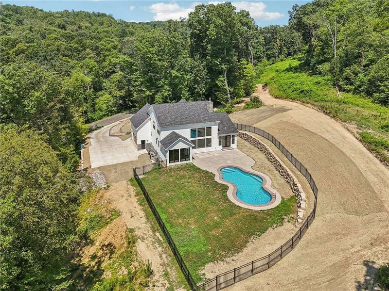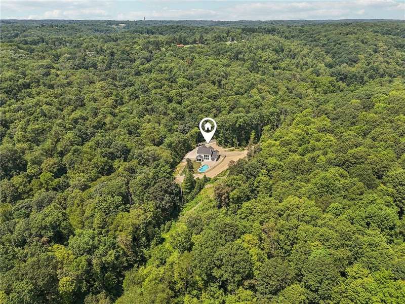 Phenomenal custom built home nestled amongst 35 peaceful/private acres. Concrete textured driveway grants entry to magnificently designed open floor concept living. Functional layout from main floor organized mudroom off garage & full laundry to unique Brazilian quartz counters showcasing the expansive kitchen with walk in pantry & pull out hidden coffee station drawer. Living room stuns with floor to ceiling stone wood burning fireplace. Vaulted wood ceiling with custom lighting & full 180 view via slider doors with invisible screens to the heated, salt-water inground pool. Primary on main is its own retreat. Wifi controlled lights/fans/music make this smart home totally sufficient including whole house Gen-r-ac back up system-dual zone HVAC. Entertainment luxury + function awaits you in lower level family room featuring electric fireplace, game room, kitchenette/dining area & 2 more bedrooms with newly finished full bath. Upper level lends to expansive open loft, 3 beds and bath.