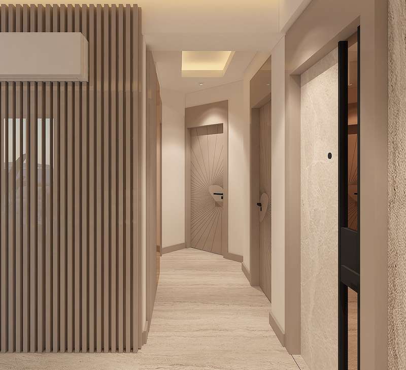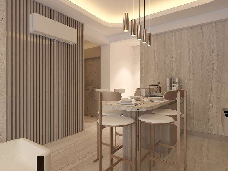 Each apartment includes a spacious dining area and an en-suite bathroom. They come equipped with air conditioning, a 4-piece built-in set, a steel entry door, automatic blinds, a TV unit, satellite TV, underfloor heating, headboards, smart home systems, and lacquered doors.