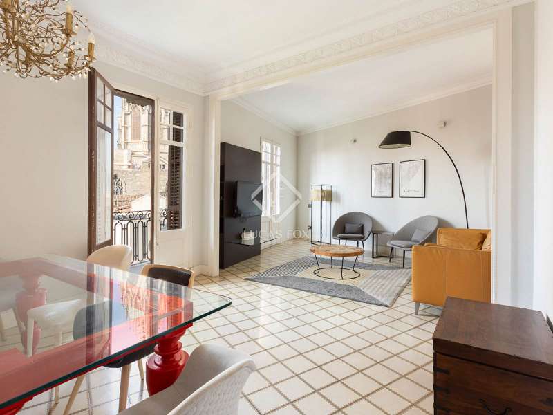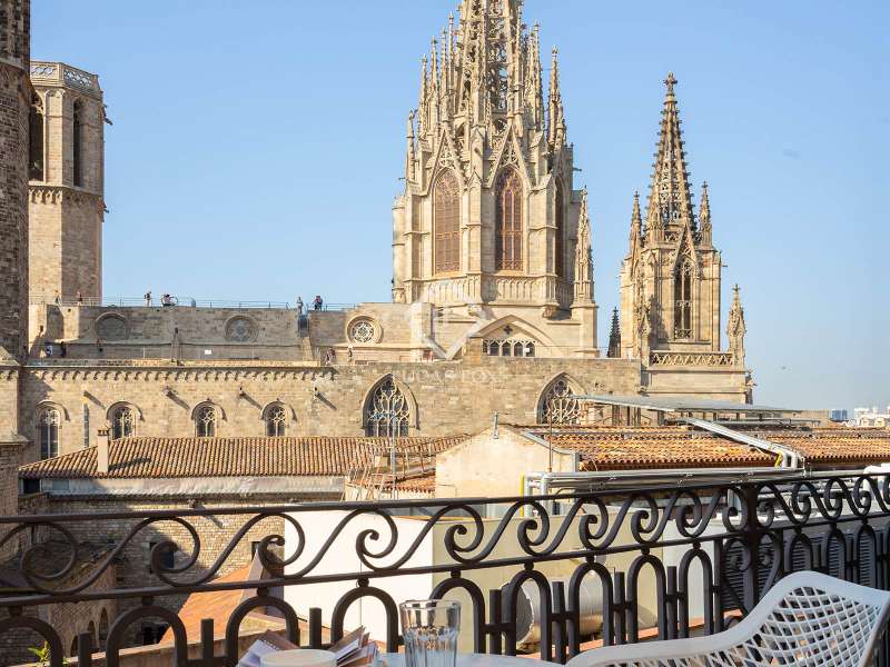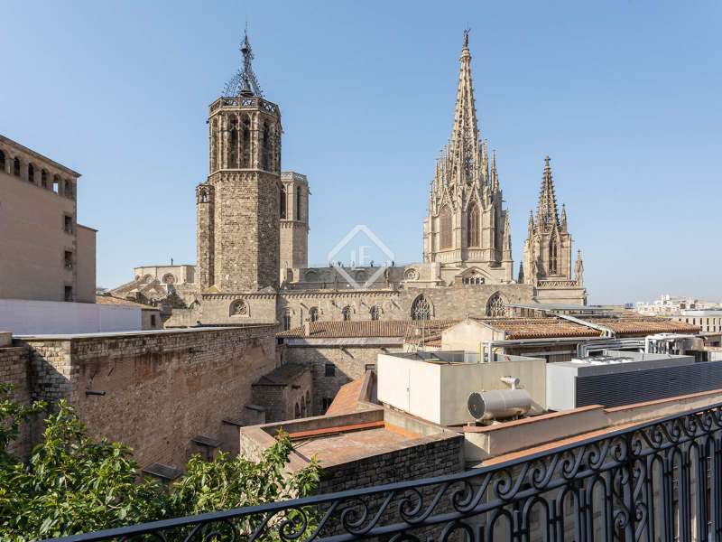 Spacious 119 m² apartment, located on the top floor of a listed building with an elevator and concierge, in one of Barcelona's most iconic areas . It stands out for its large balcony with unobstructed views of the cathedral, an ideal space for enjoying the outdoors. The property has two bedrooms and three bathrooms, offering comfort and privacy for the whole family or for entertaining. It also has ducted air conditioning with a hot/cold pump, ensuring comfort throughout the year. The building is modern and well-maintained, with all the necessary amenities for a comfortable and safe life. Thanks to its height, the apartment is bright, quiet, and has excellent natural ventilation. A unique opportunity to live in the heart of the centre, with all the amenities and in an unbeatable location.
