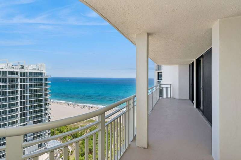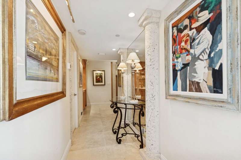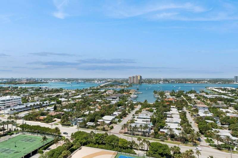 Unique opportunity for a beautifully designed 3BR residence in Tiara. The double unit showcases both ocean and Intracoastal views. Open living areas feature coral-stone columns and flooring. The second bedroom serves as a private guest suite with its own living room, while the third functions as a den easily convertible to a full bedroom. The layout offers an office, laundry room, and custom closets for ample storage. A large, welcoming foyer includes a custom dry bar with a 144-bottle wine cooler. Two garage parking spaces included. Easy to show. 24/7 concierge & staffed gate, valet, pool, jacuzzi, tennis, pickleball, fitness centers w/ steam & sauna, billiards, library, card room, plus dining at the 43rd-fl Marquis Lounge & poolside Gazebo. 15 min to shopping/dining; 25 to PBI.