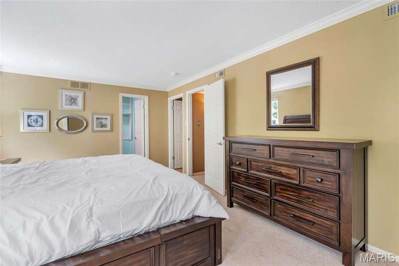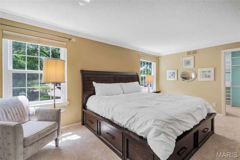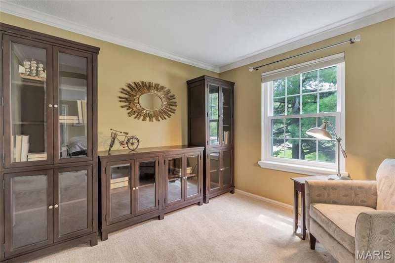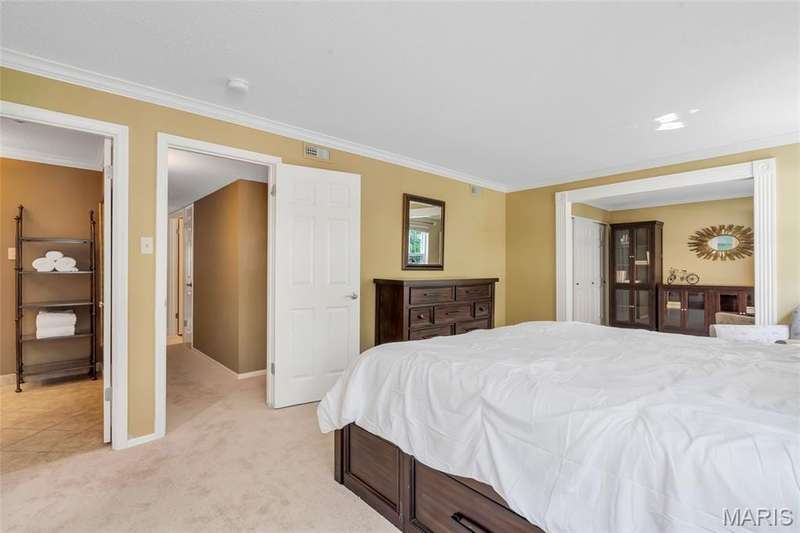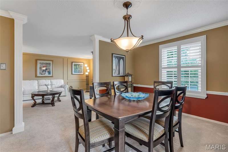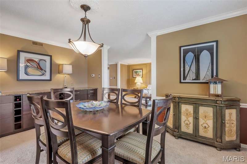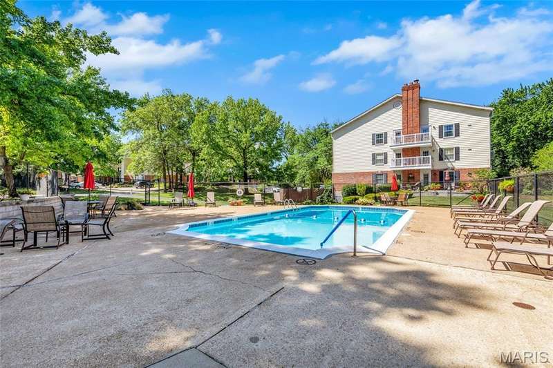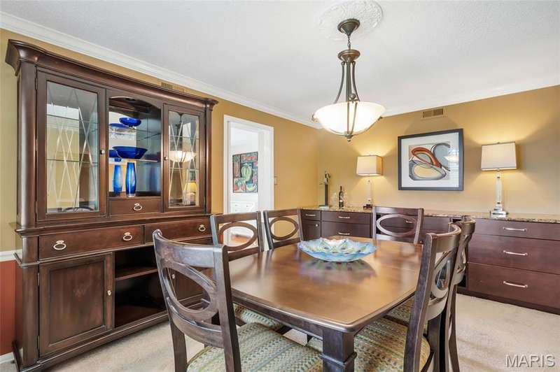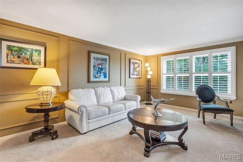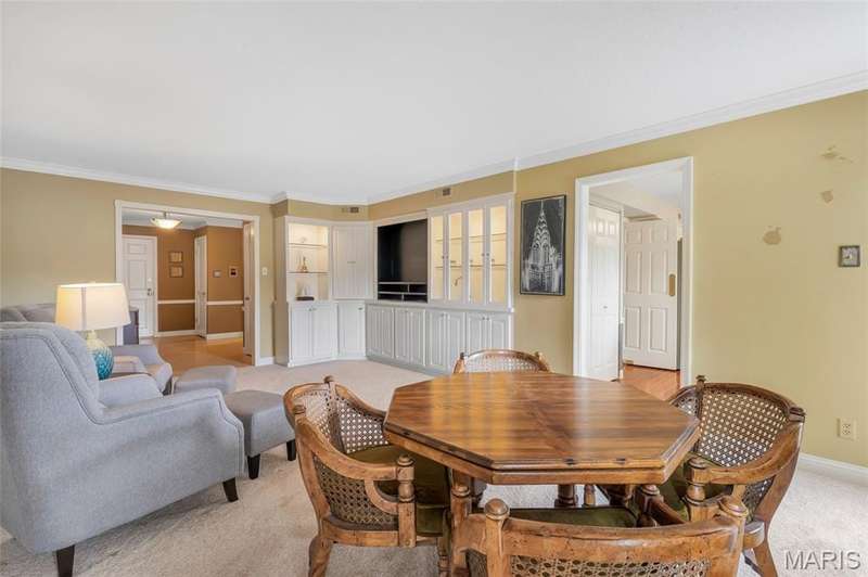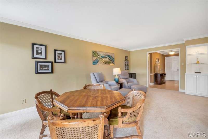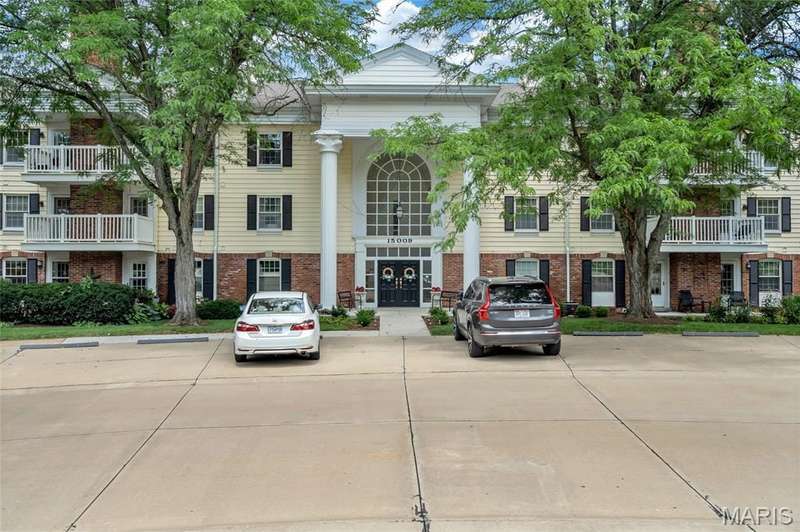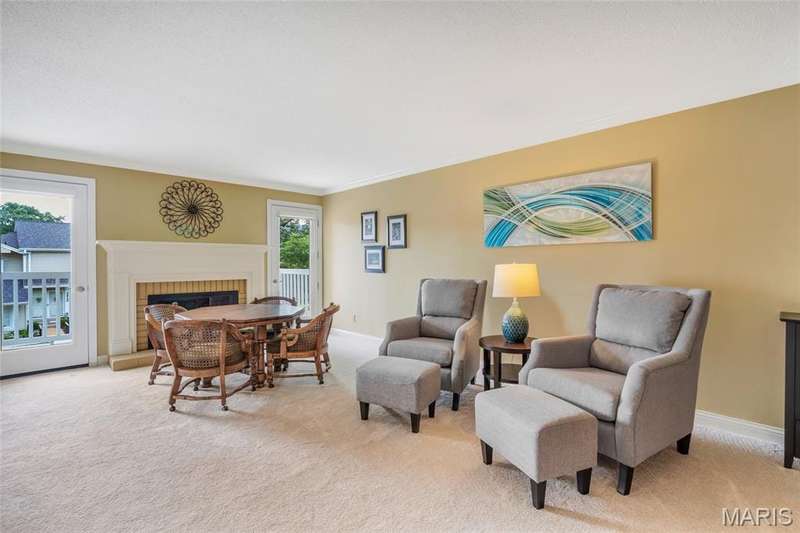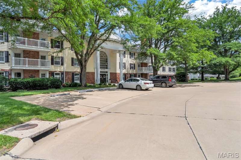 Welcome to effortless living in this spacious 2 bed, 2.5 bath condo located in the highly sought after Gardens of Broadmoor in Chesterfield. With over 2,000 square feet of finished living, this home offers both comfort and convenience in a beautifully maintained community. Step into the foyer that opens to the sophisticated living room with crown molding and custom shutters and flows seamlessly into the formal dining room, ideal for hosting. The eat-in kitchen features stainless steel appliances, granite counters, separate pantry and adjoining breakfast room for casual dining. Just off the kitchen, the inviting family room boasts built-ins, a gas fireplace and direct access to the private balcony perfect for relaxing. The primary bedroom is a true retreat, featuring a walk-in closet, updated ensuite bath with dual sinks, soaking tub, and separate shower, plus a bonus adjoining sitting room with extra closet space. A second bedroom, serviced by its own full bath, a powder room for guests and a full in unit laundry room with cabinetry complete the layout. The unit has an under building, covered, private parking space and an additional storage unit. Community amenities include two pools, tennis and pickleball courts. Award winning Parkway School District, fantastic location with easy access to amenities. Enjoy the low maintenance lifestyle this well appointed property has to offer!