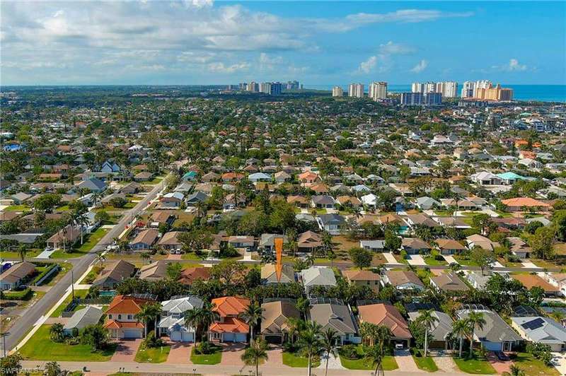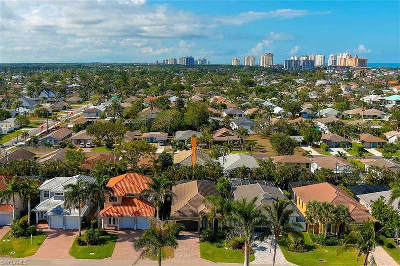 What are you waiting for? Significant price reduction and being offered turnkey furnished-this 3-bedroom plus den, 3-bath home with a two-car garage and screened pool is ready for you. Located in the sought-after 500 block of Naples Park, this move-in ready property combines quality finishes with a prime location just a short walk or bike ride to the beach to enjoy the beautiful sunsets. Inside, you'll find high ceilings, porcelain tile throughout (no carpet), and a gourmet kitchen with stainless steel appliances, granite countertops, and an oversized breakfast bar. The expansive great room is perfect for gathering, while solid wood doors, impact glass windows and doors, and a brand-new AC (2022) add comfort and peace of mind. The primary suite and guest rooms are spacious, with well-appointed baths. Step outside to a pavered, screened pool deck surrounded by lush landscaping and a fully fenced backyard-offering privacy and a perfect retreat. No HOA fees, Flood Zone X (no flood insurance required), and surrounded by newer homes with great curb appeal. This home is ideal for a full-time residence, seasonal escape, or investment property with proven rental history and future bookings already in place. Turnkey, upgraded, and in one of Naples' most desirable neighborhoods-schedule a showing today.