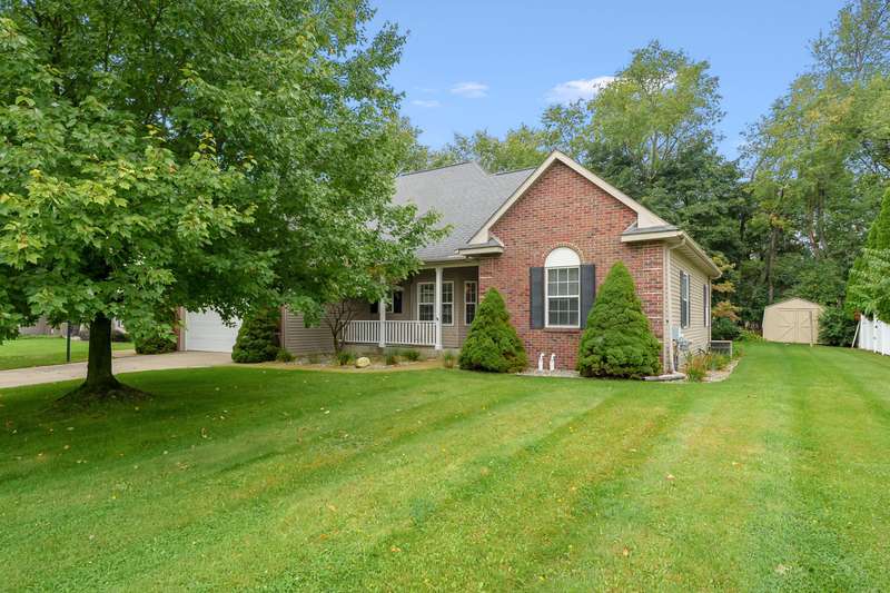 First OPEN HOUSE Sunday 10/4 Noon-2 Ranch home in highly desirable Comstock Township neighborhood . A fine blend of brick and vinyl siding provide a nearly care free exterior surface area complete with fine lawn, storage shed, beautiful back deck and gorgeous land scaping. Enter the home through the front door and immediately step into a short hall leading to the living room (complete with fireplace) and the formal dinning area. To the right is a hallway that leads to 2 good sized bedrooms and a full sized shared bath. If you turn left past the fdr you walk into the light filled generous sized kitchen complete with all appliances. The laundry room to opposite the kitchen and then the full sized primary suite with wonderful light filled windows and a full primary bathroom suite. Downstairs is a partially finished area and a lot more room with potential to complete. The wonderful deck is out the back of the kitchen and really adds a distinct flavor to the house