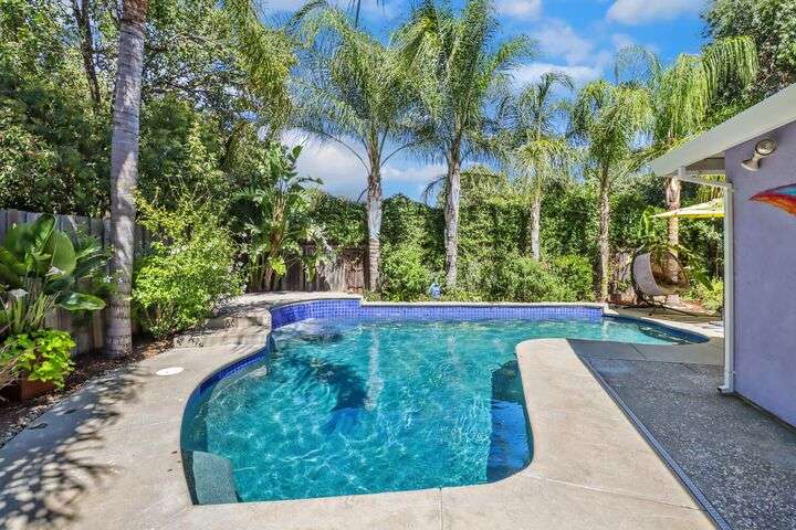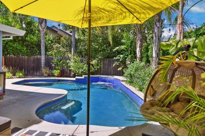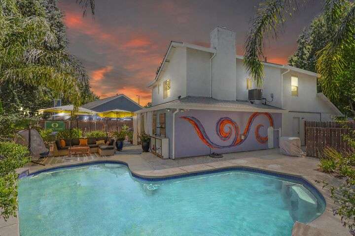 Cul-de-sac location meets backyard bliss! This casual and comfortable 4-bedroom, 2.5-bath retreat invites you to slow down and savor each day. Out front, you'll find fresh landscaping and extra parking for a car or RV. Step inside to a remodeled kitchen with soft-closing white cabinets, under-cabinet lighting and outlets, a gorgeous backsplash, and a farmhouse sink. The cozy breakfast nook is ideal for lingering mornings, complete with an extended counter/cabinet area and your very own kegerator perfect for game-day fun, parties, or just a cold beer after work. (Prefer something else? It easily converts to a beverage fridge!) But the real showstopper is the backyard, a true sanctuary designed for both fun and relaxation. Lounge by the sparkling pool with its soothing waterfall, or gather with friends and family in sunny spots and shady retreats. It's the perfect blend of comfort, style, and everyday enjoyment. Nearby you'll find four city parks (including one right in the cul-de-sac), an elementary school, the bike/pedestrian overpass, and the brand-new library. This is a home and a neighborhood that truly welcomes you, inside and out.