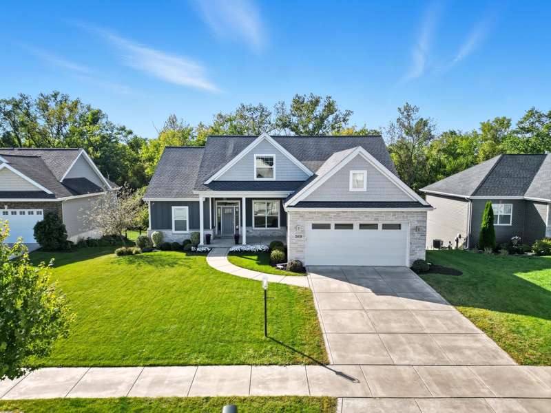 Welcome to this beautifully maintained 2-bedroom, 2.5-bath Cape Cod-style home offering 2,440 square feet of refined living space. With clean, crisp colors and thoughtful design throughout, this home blends classic charm with modern comfort. The inviting great room is filled with natural light, creating a warm space for everyday living and entertaining. Vaulted Ceilings throughout. Owners suite on main floor with walk in closet, double bowl sink, tub and custom shower. A dedicated office provides the perfect setup for working from home or managing daily tasks. 2nd floor loft and bedroom with additional full bath.The spacious unfinished walk-out basement is ready for your design or additional bedrooms or living space. Already plumbed in for future bath and opens to a stunning backyard getaway--ideal for relaxing, entertaining, or enjoying nature in your private outdoor retreat. Located just minutes from dining, shopping, and recreational activities, and with quick access to major highways, this home offers the perfect balance of tranquility and convenience. Don't miss your chance to own this move-in-ready gem in a highly desirable area!