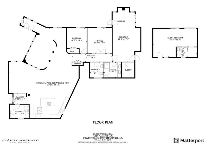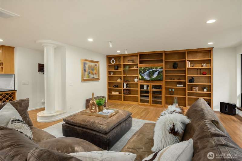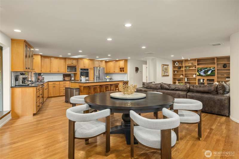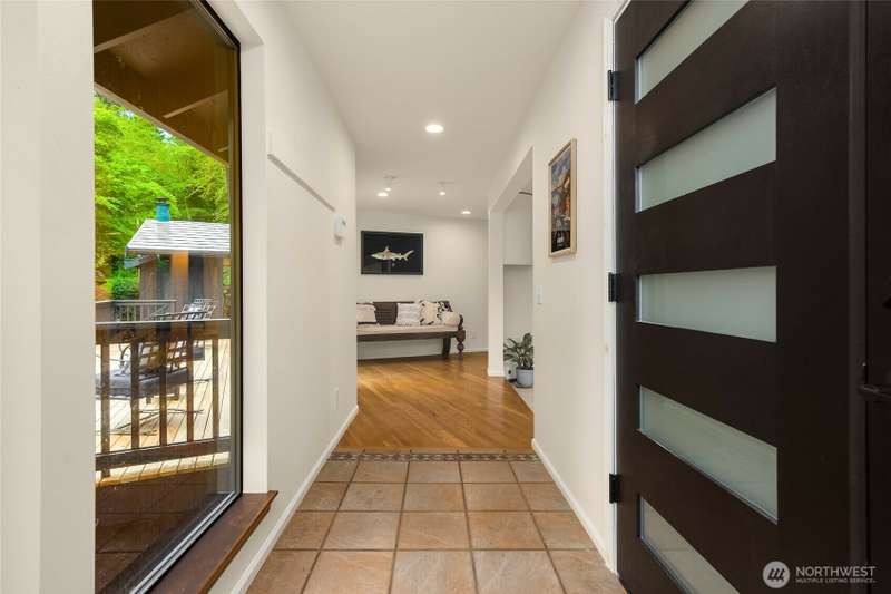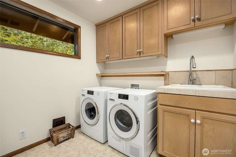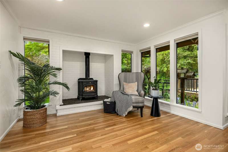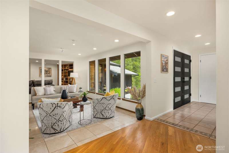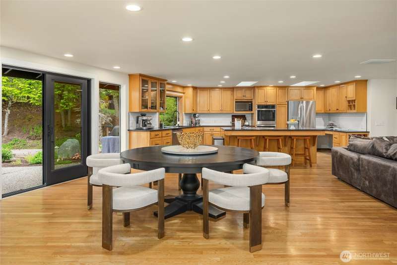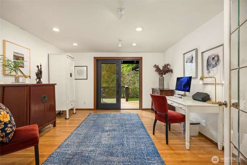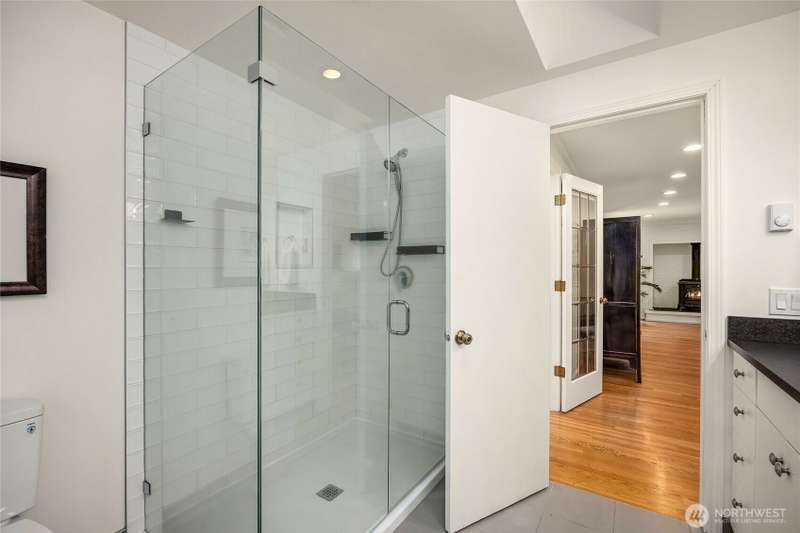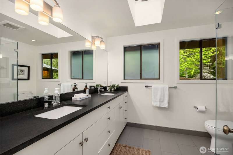 Stunning one-level home with a detached studio on lovely acreage abutting the Bloedel Reserve. The approach is along a peaceful driveway past your own pond & gorgeous gardens with a huge English walnut tree. The lot is private & sunny. Inside this home is open & airy with large windows to bring the outside in...a perfect home to entertain in with a great room that spills out onto expansive decks as well as separate spaces to work or play in. Beautiful, beveled glass French doors lead to a wonderful office. Main house has 2304 sq ft & detached studio with a full bath & large private deck has an additional 432 sq ft. Don't miss the fabulous greenhouse with radiant heated tables tucked in the garden, & workshop off the garage.