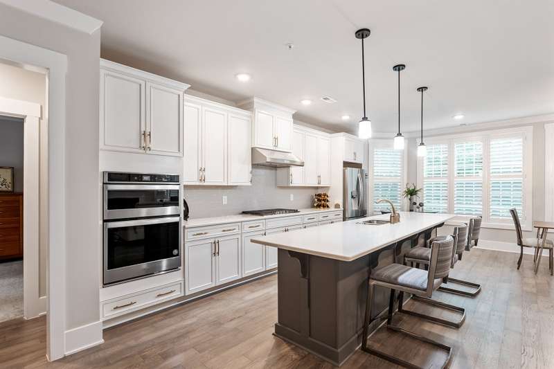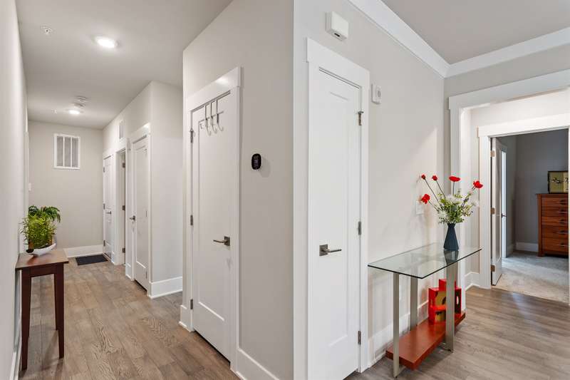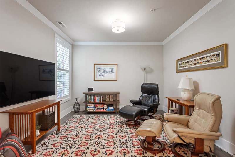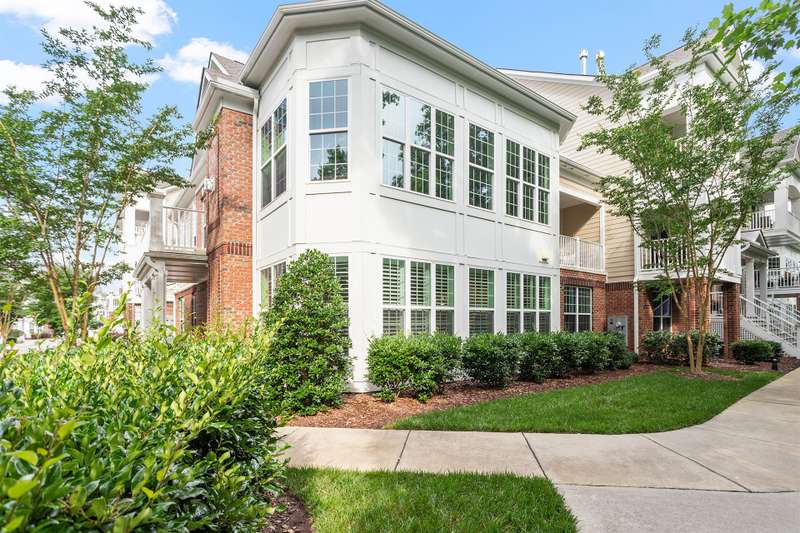 A main level Luxury condo with 2 beds + den / home office that is just 5 years young! Amazing light and situated just perfect for early morning sun and late afternoon shade, overlooking natural green area it feels like your outdoors all day. The open floor plan lends to an easy lifestyle condo. LVP flooring in main living areas with a gas fireplace in family room. The gourmet kitchen boasts Quartz countertops with large eat at island, soft close drawers and doors, SS appliances with built in wall and microwave oven, 5 burner gas range and vented hood.Large primary suite with resort style double headed walk in shower with bench seat and frameless glass enclosure. WC and double vanity. Sprinkler protected building. Laundry room has upgraded wash sink and storage. Walk to neighborhood restaurants, shops, and a grocery store! Wonderful Brier Creek location mins to RTP, RDU and both DT Raleigh and Durham. Don't miss this chance at the easy life!