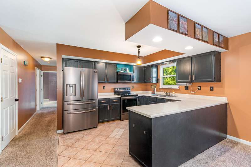 USDA financing eligible to qualified purchaser! This three bedroom/2 bathroom brick ranch is conveniently located in the heart of Independence. Convenient access to Kroger and new Downs of Nicholson development with multiple restaurant options. The first floor boasts a large open living/kitchen/dining space with wood burning fireplace and black stainless steel appliances. Walkout to rear deck with tree lined backyard space. Primary bedroom features ensuite bathroom with stand up shower. Partiall finished lower level. Two car built in garage. Newer HVAC system! Schedule your private showing today!