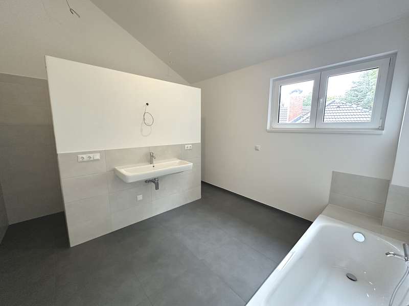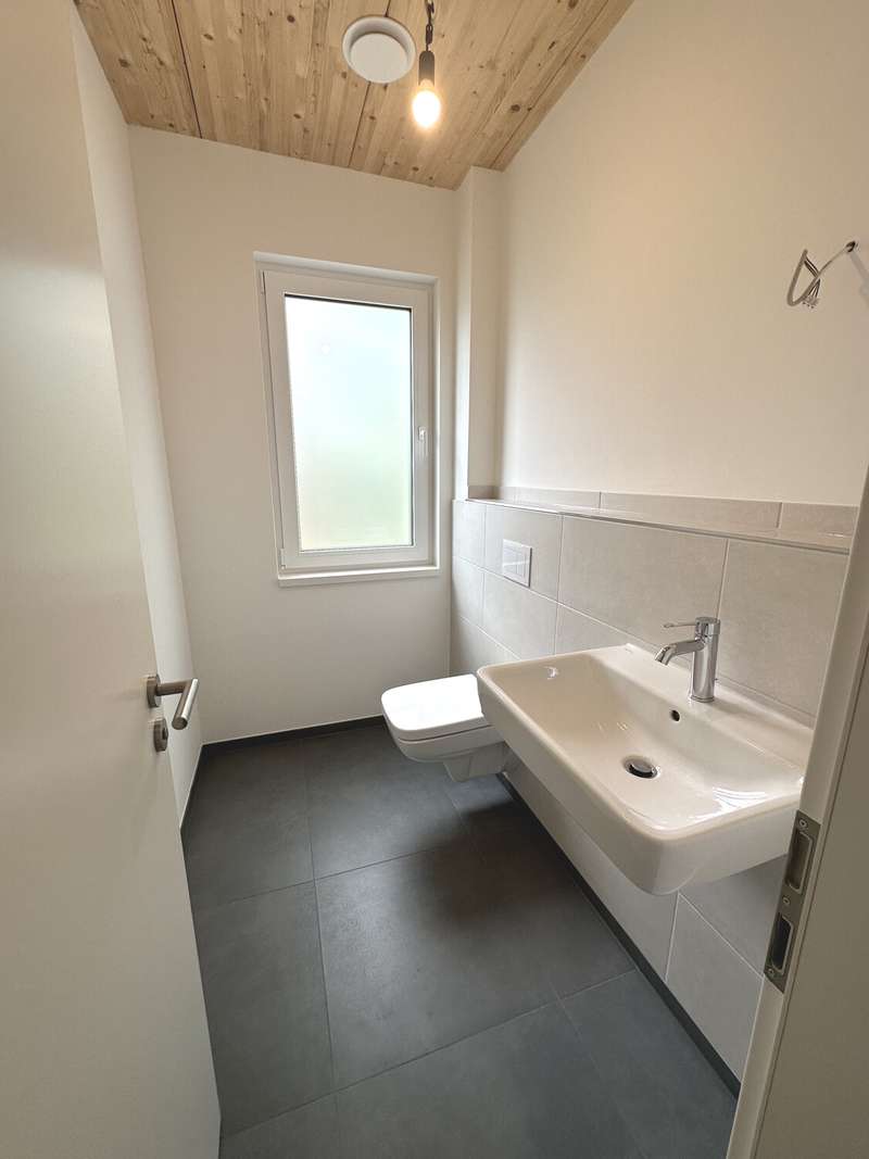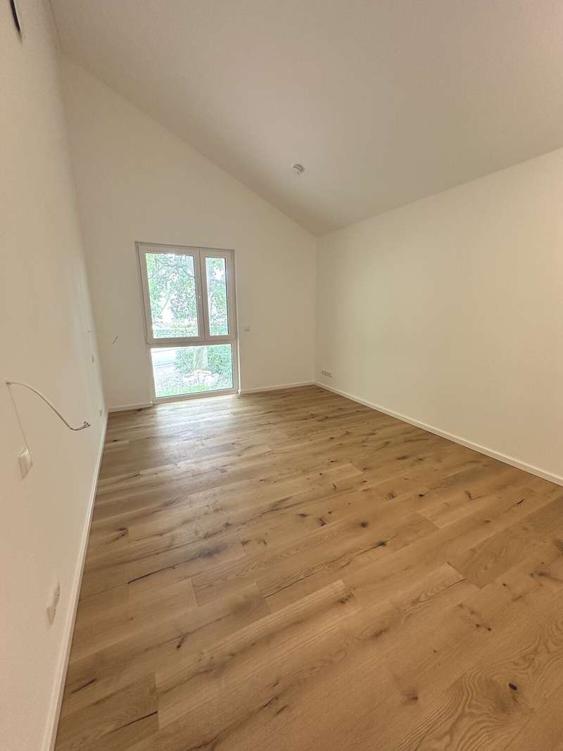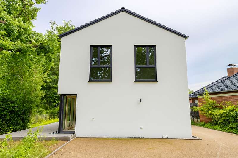 This modern new-build semi-detached house in first occupancy offers a spacious and well thought-out living concept on a living space of approx. 135 m² and a plot of approx. 313 m². Built in a healthy timber frame construction to KfW 40 Plus standard, the house boasts state-of-the-art technology and high energy efficiency. Underfloor heating in combination with a heat pump and a photovoltaic system with 20 modules (7.8 kWp) and a separate bidirectional meter ensure future-oriented living. The central ventilation system with 90% heat recovery ensures a pleasant indoor climate. The space on offer comprises four rooms, three of which are bedrooms - ideal for families or couples with space requirements. A modern full bathroom with a floor-level shower and a guest WC round off the floor plan in functional terms. On the first floor, floor-to-ceiling windows create a light-flooded atmosphere. Electric sun and privacy screens offer comfort and privacy. The spacious living and dining area with space for a fitted kitchen, a guest WC and a utility room with adjoining utility room are located here. An open oak staircase stylishly connects the first floor with the upper floor. The upper floor impresses with its exceptional ceiling height and high-quality furnishings. Oak parquet flooring has been laid in the living rooms and bedrooms, while the kitchen and bathrooms are tiled in a modern style. Particularly noteworthy is the south-facing terrace - perfect for relaxing hours outdoors. The low-maintenance outdoor facilities and an outdoor parking space with wallbox connection cable offer additional convenience and ideal conditions for electromobility. There is no commission for the buyer. This semi-detached house combines compact living with state-of-the-art technology and a high quality of life. We would be happy to provide you with a 360° tour on request. For further information or to arrange a viewing appointment, please do not hesitate to contact us at any time.