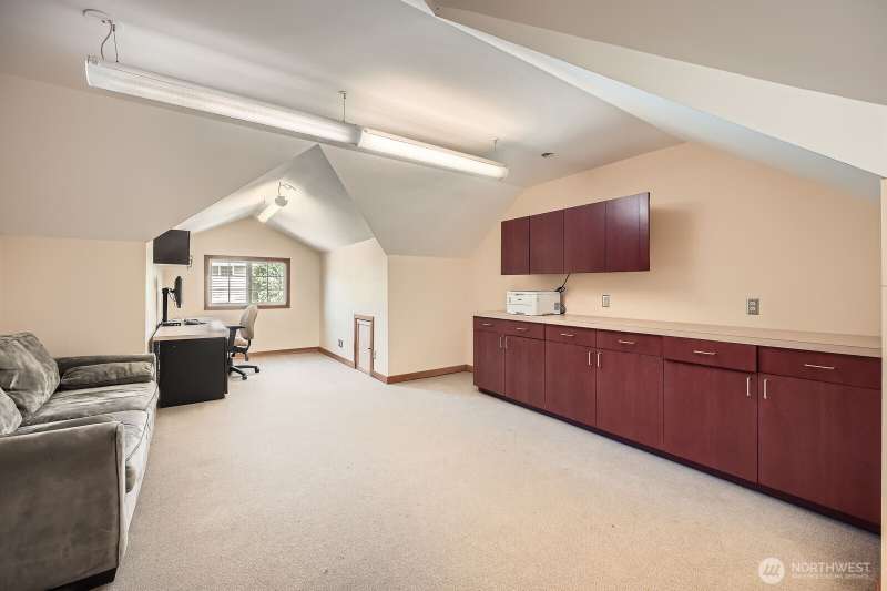 This Beautifully Maintained Shorewood Daylight Basement Rambler w 2100 SF Shop is a Rare Find! 4 bed, 3.5 baths home is just shy of 3,000 sf and features generous bedroom/living spaces including a 325 ft primary bedroom with a cozy gas fireplace. Lower level offers a 300 sf rec room with theater seating that leads out to the multi-level deck in the back yard. Additional features include original red oak floors, integrated sound system, heated floors in baths, Rinnai tankless water heater and attached two car garage. Behind the home is a 2,100 sq ft two-story detached shop that includes a 400 sf ADU and office space upstairs. NOTE:Proposed zoning changes per Seattle One will unlock potential to subdivide into separate lots in the future!