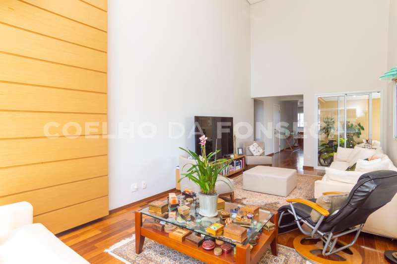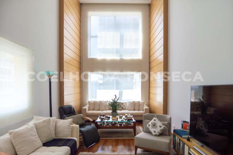 Sala de estar com pé direito duplo com muito vidro, proporcionando muita claridade, deixando um ambiente charmoso!