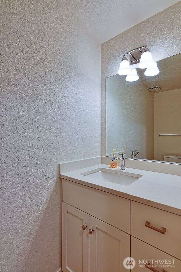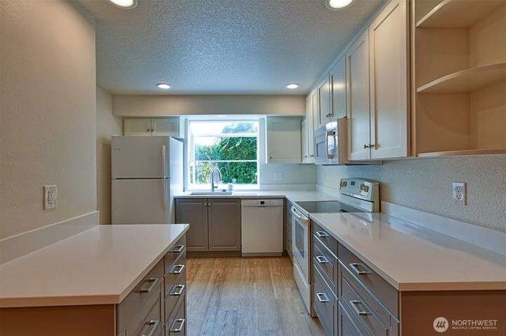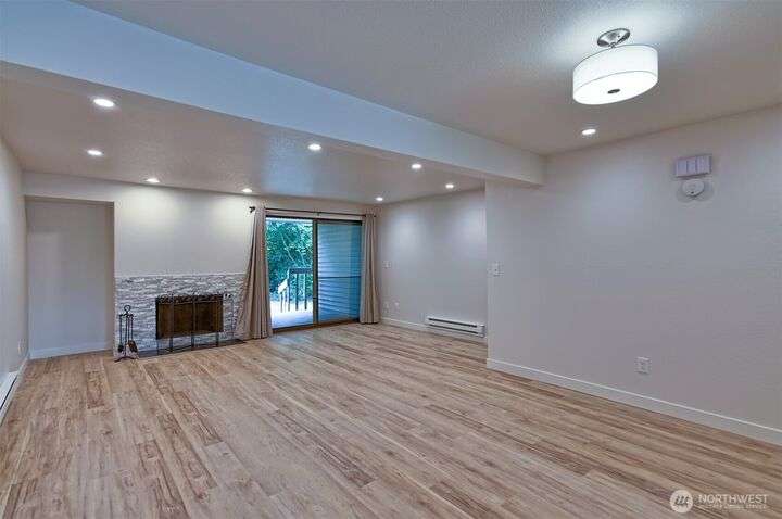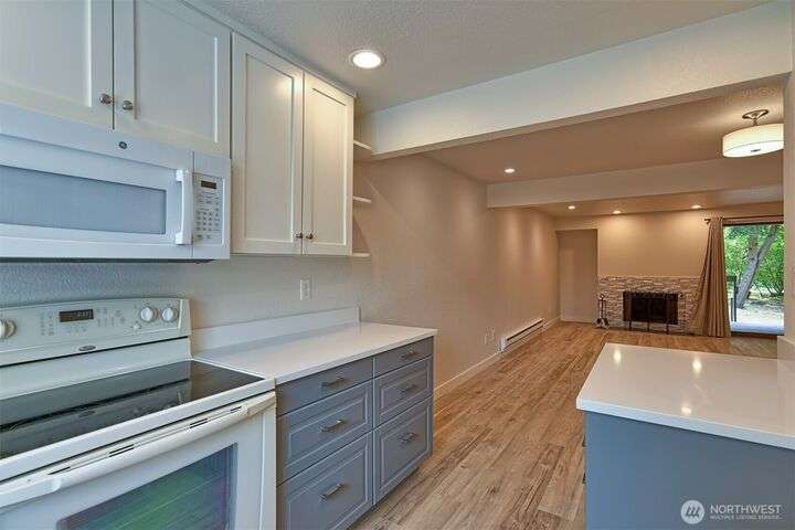 Newly remodeled condo in the desirable Center Park community. Open-concept living and kitchen area featuring a fully updated kitchen with quartz countertops, contemporary vinyl plank flooring, can lighting, and garden window. The spacious living room offers a cozy wood-burning fireplace and sliding door access to a private back porch with a storage shed. Upstairs, you’ll find two bedrooms connected by a Jack-and-Jill bathroom. Primary bedroom boasts a private deck overlooking serene community green space and nearby walking trails. Two assigned parking spaces located right in front of the home. No pets and no smoking. Ideally situated within the Mukilteo School District and just minutes to I-5, Boeing, shopping, restaurants, and more.