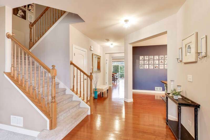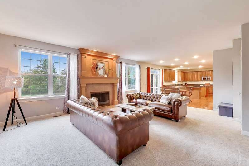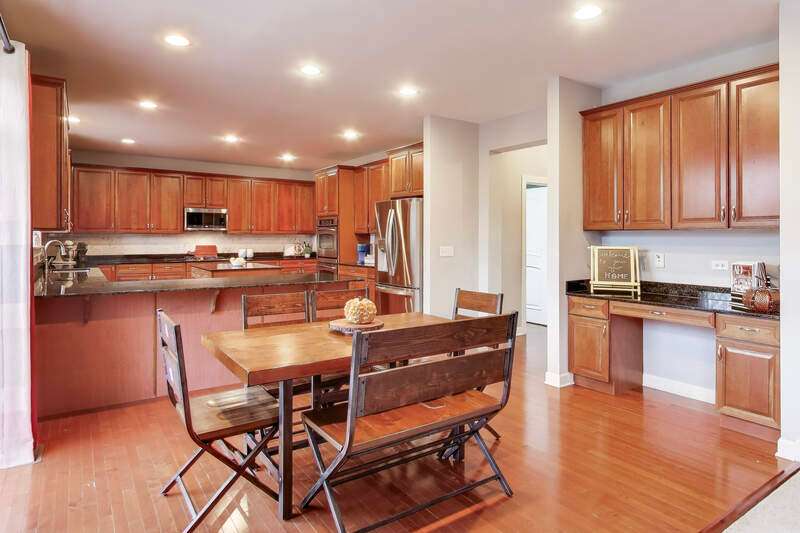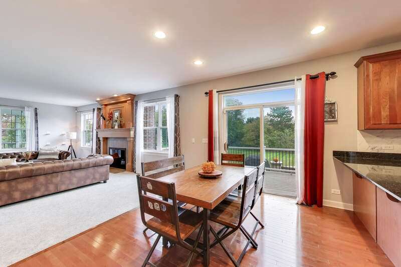 Welcome to 3025 Long Common Parkway, Elgin, Illinois - a stunning residence in the sought-after Providence Subdivision, set on more than half an acre within the highly rated District 301 schools. Designed for both sophistication and comfort, this home offers over 4,100 square feet of beautifully finished living space. Step onto the inviting covered front porch and into a bright, open interior featuring formal living and dining rooms-ideal for entertaining-and a private main-floor office with French doors for quiet work-from-home days. At the heart of the home is a chef's dream kitchen, showcasing 42" cabinetry, granite countertops, stainless steel appliances, double ovens, a spacious island, and breakfast bar seating. Additional features include a homework desk, a massive walk-in pantry, and a convenient butler's pantry that connects to the dining area. The kitchen opens seamlessly to the family room, where a gas fireplace, expansive windows, a second staircase to the second level, and breathtaking backyard views create a warm and inviting atmosphere. From here, step into the screened-in porch-the perfect spot for morning coffee or peaceful evening relaxation. Out back, you'll find a true outdoor oasis with a brick paver patio, built-in fire pit, and spacious deck, ideal for hosting gatherings or simply unwinding in the private, park-like setting. Upstairs, the luxurious primary suite offers a sitting area, dual walk-in closets, and a spa-inspired bath complete with a jacuzzi tub, separate shower, and dual vanities. All secondary bedrooms are generously sized, each with its own walk-in closet-one even features a private balcony overlooking sunset views. The second-floor loft provides incredible flexibility, perfect as a playroom, fitness area, or second office, and the entire level features rich hardwood flooring throughout. Additional highlights include a main-level laundry room with sink and cabinetry, a 3-car garage, and a full unfinished basement with rough-in plumbing for a future bathroom. The home has been freshly painted inside and out and is conveniently located near Route 20 and I-90, offering easy access to shopping, dining, and entertainment. To top it off, the school bus stops right in front of the home, adding everyday convenience for families. 3025 Long Common Parkway beautifully combines elegance, function, and modern comfort-a perfect place to call home.