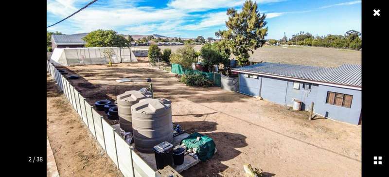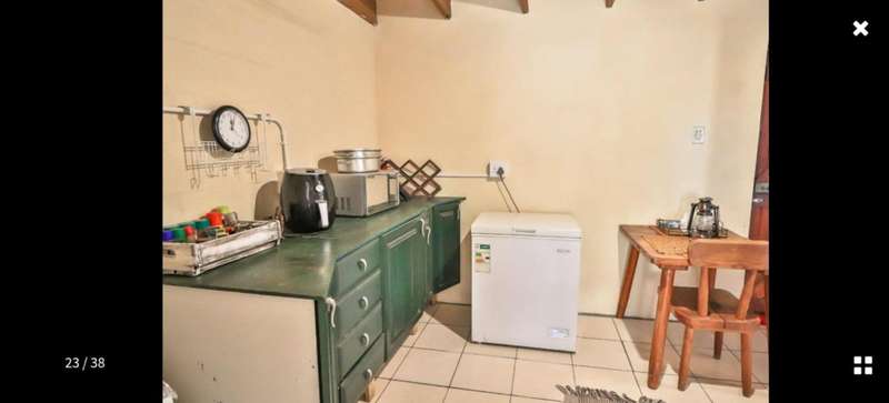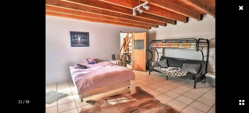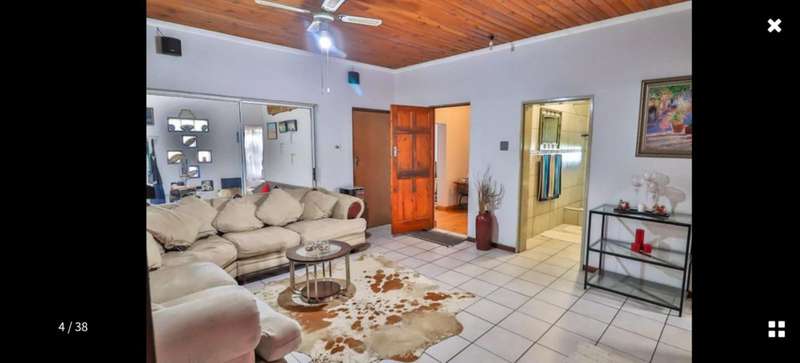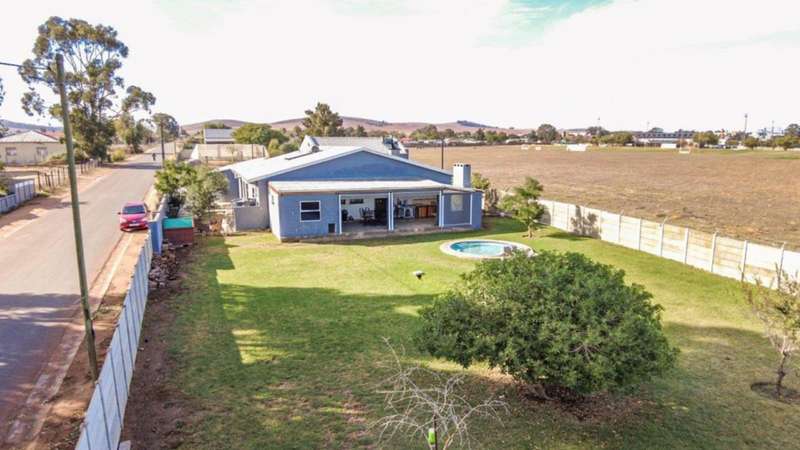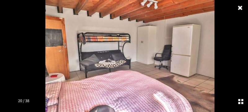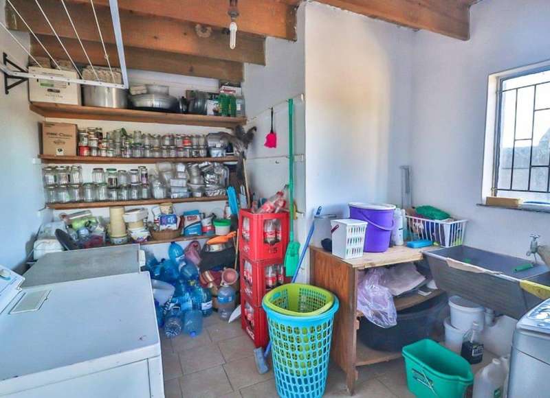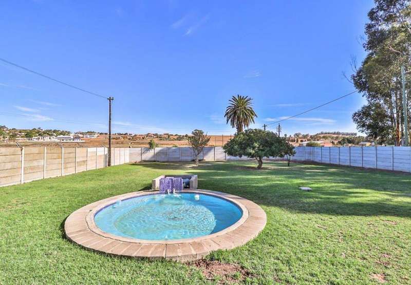 This property has so much to offer; do not delay make an appointment now! The large house can be divided into separate living areas that can be rented out or even be used for a family that would like to share the property with their parents. The large home has five spacious bedrooms and the main bedroom has an en-suite (Bath, toilet and basin). The second guest bathroom has a toilet, basin and shower. The one bedroom has the potential to be a bachelor flat, with a small kitchen, bathroom and its own entrance door. There is a large loft that can be transform into another flat, or it can be used as a storage space. Outside in the garden is another living space that can be rented out or used as extra storage. All the bedrooms has doors that give access to the outside. The large patio has a build in braai and the pool area round off this lovely entertainment space. The Patio has roll up canvas blinds for the cold and windy days. The ten seater dining table and chairs will be included in the sale of the house. The large open plan kitchen has abundant cupboards and a separate scullery. This spacious area form part of the dining room and lounge. The build in braai rounds off this lovely open space. The second lounge is the perfect area for a TV room. The large laundry room has all the necessary fittings and laundry basin. The house has a very large double garage that can easily be used as a workshop or converted into another flat. There's ample outside parking space for extra vehicles. The garden is quite large and has potential to extend on the veggie patches or even plant some fruit trees. The 144sqm greenhouse is ready to plant your own veggetables with errigation already in place. The borehole supply enough water for the garden and the filter system makes it safe to use in the house. The boreholes pumps 3 500 liter water per hour and feeds directly into 2 X 5000 liter water tanks with ball valve. The 2 X 500 liter water tanks collect rainwater. The swimming pool gets filled up with the borehole water. The house has two solar geysers that can work on high or low pressure. There's also a changeover switch for your generator. Ceiling fans and air conditioners are around the house and solar lights fitted throughout the house for those loadshedding evenings. The house has been fitted with burglar bars, security gates, an alarm system, cctv camara's and the owners are linked to a security company.