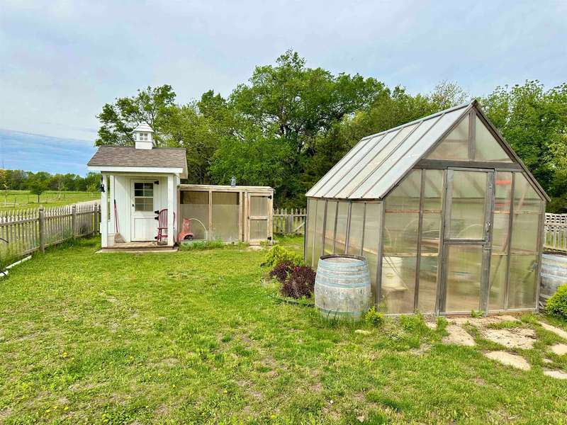 Price Reduced! Rare opportunity to own 81.2 acres in a prime location just minutes from Wichita and Andover, Kansas, within the highly regarded Andover School District (USD 385). This diverse property at 14601 SW 60th St offers a unique blend of country tranquility, agricultural capability, and long-term investment potential. A running creek winds through the NW portion of the property, adding natural beauty, wildlife appeal, and additional habitat diversity. Organically managed for over four years and ready for certified organic status, the land has been carefully stewarded with cover crops and regenerative soil practices. The property features a 60' x 40' insulated metal barn built in 2020 with concrete flooring, two electric overhead doors, underground power (480V/220V/110V), LED lighting, Wi-Fi, and a 60' covered lean-to for storage. Additional improvements include a 2,100 sq ft heated greenhouse built in 2021 with roll-up sides, propane heating, and a sophisticated Netafim irrigation system serving 13 rolling-top growing tables with heated mats and thermostatic controls. Other site enhancements include a gated entry, enclosed raised-bed garden area with an additional small greenhouse, a Chateau-style chicken coop with enclosed run, and a designated bee habitat station. A major highlight of the property is its extensive water infrastructure and water rights, with approval for up to 72 irrigated acres, 86.4 acre-feet/year, and flow rates up to 800 GPM. Three 85 wells feed a computerized irrigation system divided into 16 independently controlled 2.5-acre zones, supporting drip or flood irrigation across roughly 40 acres. An automated injection pump is included for nutrient delivery. Butler County rural water also services the barn, greenhouse, and camp area. This system is ideal for produce or specialty crop operations. The property is also well-suited for a market garden, CSA, vineyard, agri-tourism venue, or new homesite. Sellers mineral and water rights transfer with the sale. 2024 taxes are $9,697.10. Sale excludes certain personal property, including a 2020 Airstream, New Holland PowerStar 110 tractor, and Kawasaki Mule UTV, but these may be negotiable. Additionally, the following decorative and personal items are excluded from the sale: the boys' sculpture and bear/boy sculpture with large stone in the camp area, decorative stone and ceramic flower pots, four large flat stone benches surrounding the camps stone fire pit, the copper fire pit basin with wood cover and four chairs, and assorted personal items, tools, and equipment located in the barn. Dont miss your chance to own a fully improved, organic-ready tract with scalable water resources, a running creek, and premium location.