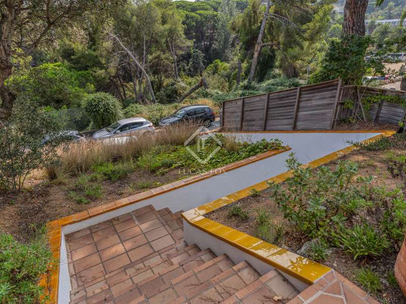 Lucas Fox presents this Mediterranean-style house, with large windows that flood the spaces with natural light and offer stunning sea views for sale in Blanes. This comfortable and elegant property enjoys a privileged location close to the beach. It has a constructed area of 175 m², on a plot of approximately 800 m², surrounded by a lush garden that provides privacy. The garage, located at street level, has capacity for two vehicles. Upon entering the ground floor, there is the main entrance which leads to a modern and fully equipped kitchen. Next to the kitchen, there is a practical utility room and a guest guest bathroom . Next is the open-plan living-dining room , perfect for gatherings with family or friends. The living room has an elegant fireplace, ideal for creating a warm atmosphere during the cooler evenings, and offers direct access to a spacious terrace, with sea views. On this same floor, there is a wine cellar with great potential, as it could be easily integrated into the living room, allowing the living area to be further expanded. The upper floor houses a luxurious bedroom with its own en-private bathroom, along with three spacious double bedrooms that share a full bathroom , all of them tastefully decorated and equipped with built-in wardrobes. The views from this floor are equally spectacular. There is also the possibility of extending the house, either by enlarging the living room or adding an additional bedroom on the ground floor, which increases the potential of the property to adapt to the needs of any family. All spaces in the house are air-conditioned with a hot/cold air conditioning system, for maximum comfort at any time of the year. Exterior, there is a large, well-kept garden, with enough space to install a swimming pool, perfect for sunbathing or enjoying outdoor activities. Please contact for more information.