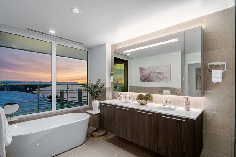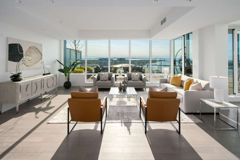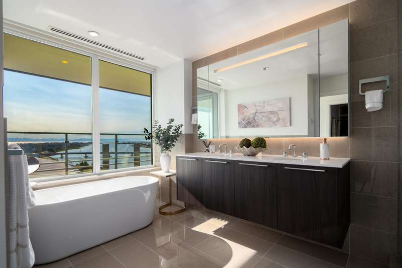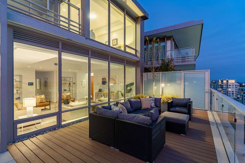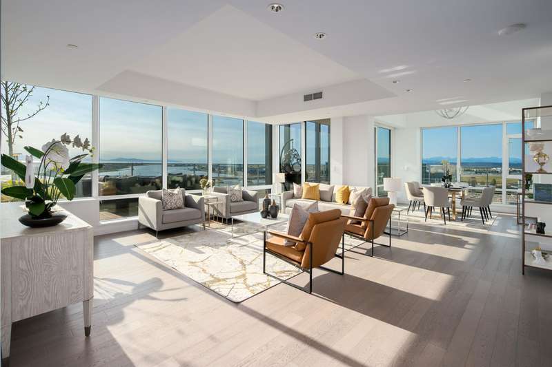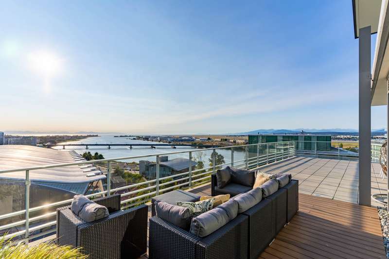 On a precious stretch of waterfront, 2 River Green by ASPAC defines contemporary high-end living. This spectacular two-storey penthouse offers over 3,098sf of refined interior space and a over 2,100sf private terrace. Enjoy breathtaking 180° unobstructed views of the water, mountain & city. Chef-inspired kitchen, complete with a dedicated wok kitchen, offers the versatility every cook desires. The double-height ceiling over the dining & stair areas creates an impressive sense of volume and light. One ensuite bedroom on the main level and three additional ensuites upstairs, providing the perfect blend of comfort and privacy. A true masterpiece of design and penthouse lifestyle. This home comes with a private two-car garage plus an additional parking stall. 5-Diamond resort-style amenities!