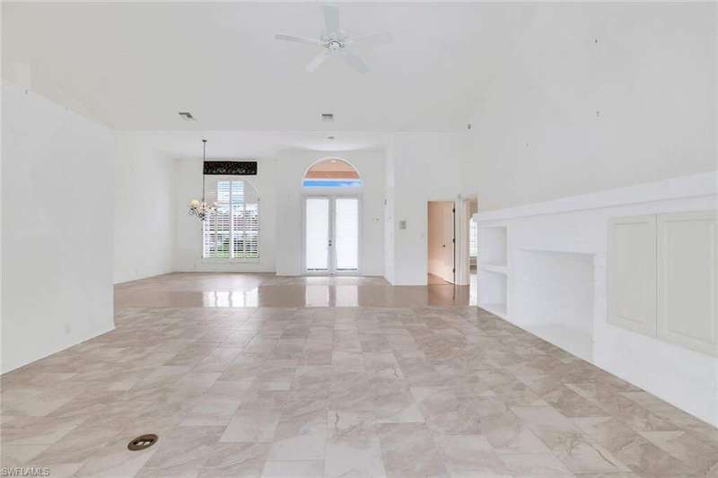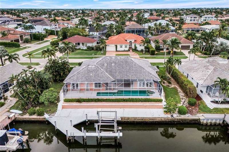 An exceptional waterfront opportunity on Marco Island's desirable south end! This property at 742 Orchid Court offers quick, direct Gulf access - no bridges - and features a private U-shaped dock with a 12,000 lb. boat lift, making it a true boater's paradise. The existing home features a spacious great room layout with vaulted ceilings, hardwood flooring, and a Corian kitchen with two pantries and a bright morning room overlooking the pool and canal. There is a generous primary suite, plus a den/study with custom built-in shelving offering endless possibilities for transformation. Outside, enjoy the screen-enclosed lap pool and spa, surrounded by lush tropical landscaping and serene water views. This property presents an ideal renovation or rebuild opportunity in a prime island location, where properties with direct Gulf access and existing dockage are becoming increasingly rare. Whether you envision a complete remodel or a brand-new custom home, this address provides the foundation for your perfect Marco Island waterfront retreat.