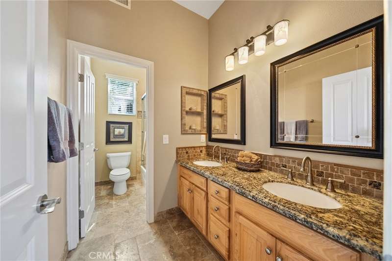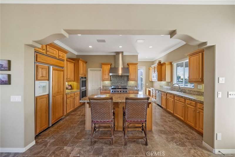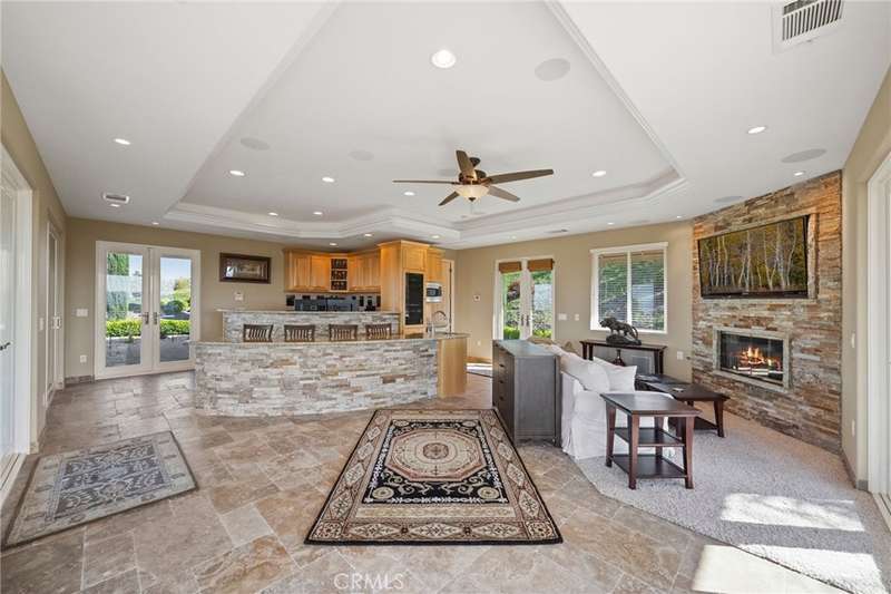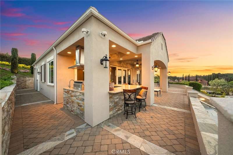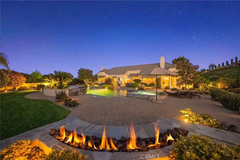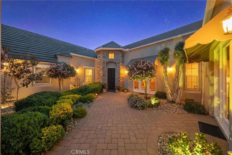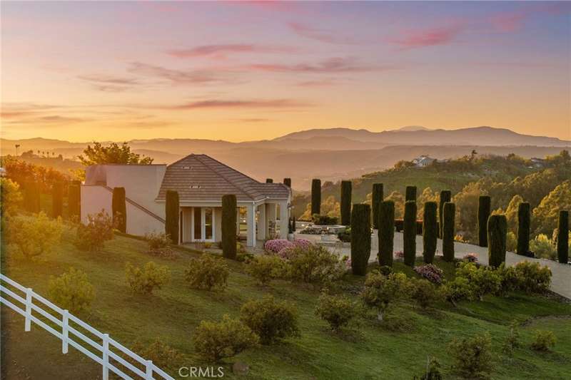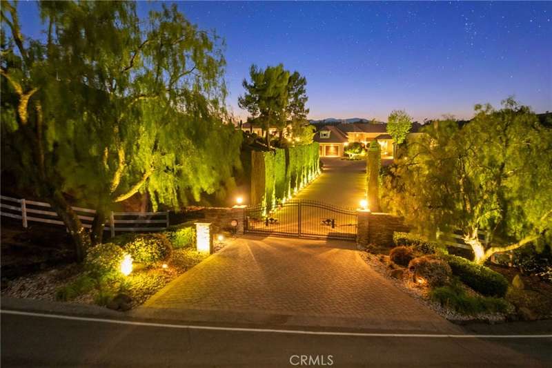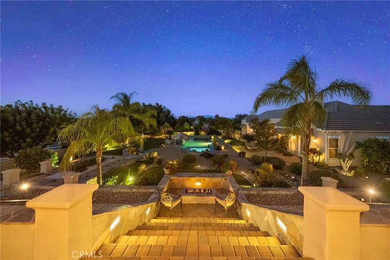 One-of-a-kind estate located just 5 minutes from the charm & culture of Old Town Temecula. Set behind 3 private gated entrances, this sprawling 4.19 acre compound features 3 separate single-story residences & an underground wine cellar all totaling approx. 6100 sq ft, masterfully positioned to capture breathtaking sunset views across rolling hills. The grounds truly set this estate apart; meticulously manicured landscapes framed by stately Italian cypress trees create an outdoor setting unlike any other. A dramatic stone stairway leads from the main home to the elevated studio residence. Entertain w/ ease and elegance w/resort style amenities; sparkling pool, two separate spas, water features, outdoor fireplaces, 2 putting greens, a sports court, & a post-tensioned tennis court w/ breathtaking views. Plus 2 built-in BBQ islands & pizza oven. Approx. 30,000 sq ft of stone pavers weave through the property. The main residence is approx. 3,275 sq ft w/ travertine flooring & architectural arches. It features 3 bedrooms, office, & 3.5 baths. The gourmet kitchen complete with granite countertops, 2 sinks, stainless steel appliances, built-in refrigerator, walk-in pantry, wine fridge, butler's pantry, & bar seating-all flowing seamlessly into the family room w/ views of the pool & gardens. The primary suite offers a private retreat w/ its own fireplace & French doors leading to the amazing pool & spa. The guest house offers approx. 1,600 sq ft of luxury living w/ 2 bdrms, 2 baths, a chef's kitchen, & fully retractable glass doors opening to commanding views of the surrounding countryside. At the estate's highest point, the studio offers approx. 600 sq ft of open-concept living, complete with an elevated desk area, curved wine bar, a built-in spa, putting green, rooftop lounge, ATV-sized garage, & unmatched panoramic vistas. A 600 sq ft stand-alone reinforced concrete wine cellar is the perfect sanctuary for wine-making enthusiasts - complemented by approx. 1,000 wine grapevines and 21 table grapevines, as well as approx. 100 avocado trees, and various fruit trees. Additional features include upgraded mahogany garage doors, extensive landscape lighting, whole house & outdoor sound systems, multiple whole-house fans for year-round comfort, & a comprehensive security system. Perfect for a multigenerational compound, vineyard retreat, or entertainer's paradise, this Temecula estate redefines California luxury living with a setting that must be seen to be believed.