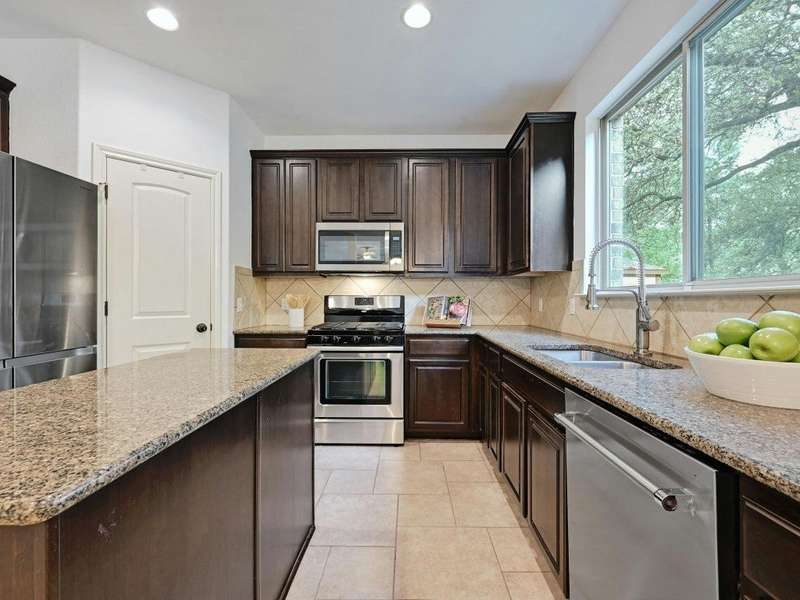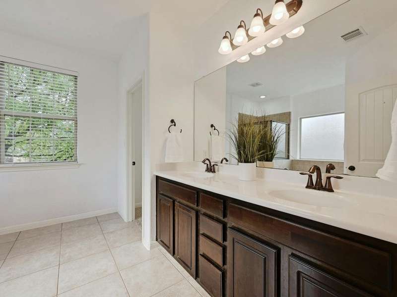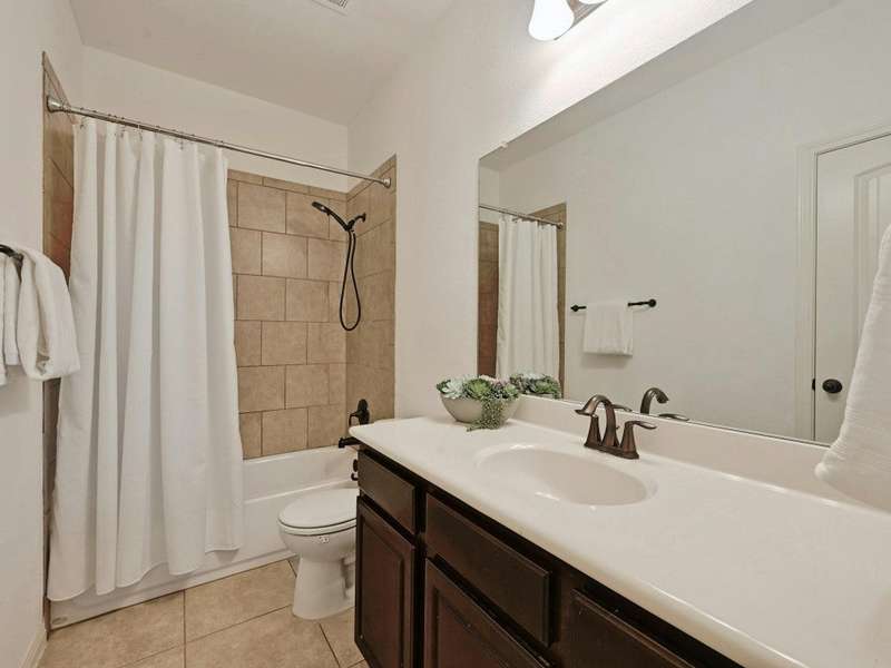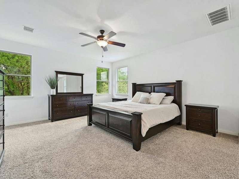 Welcome to this magnificent home located in the serene Bridges of Bear Creek community in South Austin, tucked away on a quiet cul-de-sac. This home invites you to revel in its tranquil backyard, while its spacious interior offers a dedicated office, a formal dining space, a cozy living area, and an entertaining game room upstairs. Wake up every morning to an oversized primary bedroom, which opens to a lavish en-suite bathroom equipped with a separate shower, a soaking tub, dual vanities, and a generously-sized walk-in closet, ensuring ample space for your daily routine. Two more bedrooms and a full bathroom are conveniently situated across the upstairs flex space, awaiting family and guests. The house has been freshly painted, enhancing an already bright and airy space filled with natural light. Experience the peace and privacy of cul-de-sac living in this South Austin gem. Schedule your tour today and be ready to fall in love with your new home!