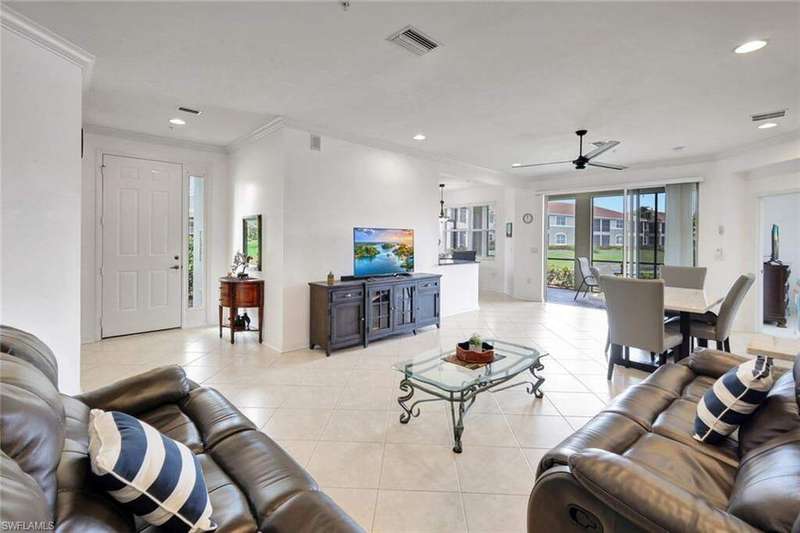 Exquisite Lakeside Luxury in Shadow Wood Preserve at a NEW IMPROVED PRICE! Step into refined elegance with this stunningly renovated residence in Bay Woods at Shadow Wood Preserve. This turnkey 2-bedroom + den, 2-bath luxury retreat offers a seamless blend of sophisticated design and breathtaking Western lake views, creating the perfect setting for captivating sunsets each evening. As you enter this first-floor end unit, natural light pours in, enhancing the expansive, open layout. Every detail has been meticulously curated, the crown molding and recessed lighting, elevating the ambiance with a timeless elegance. The chef's kitchen is a masterpiece of both form and function, featuring soft-close cabinetry and premium stainless steel appliances. The primary suite is a sanctuary of comfort, boasting two custom walk-in closets and contemporary furnishings and a luxuriously en-suite bath. The guest bath mirrors the same level of sophistication, ensuring an elevated experience for visitors. A versatile den with double doors provides the flexibility of a private home office or additional guest space. Step outside to a tranquil screened lanai with a wonderful outdoor living experience. The attached one-car garage and newer roof ensure both convenience and peace of mind. Nestled on a serene corner lot just steps from the community pool and spa, this residence offers an exceptional lifestyle. Shadow Wood Preserve's world-class amenities include a canoe/kayak launch, scenic nature trails, a fishing pier, tennis, pickleball, bocce, and more. HOA fees cover fiber-optic television, high-speed Wi-Fi, water, and insurance, while optional memberships to Shadow Wood Country Club provide access to 54 holes of championship golf, and The Commons Club offers private beach access, a state-of-the-art lifestyle center, and exquisite dining experiences. Ideally situated in the heart of Southwest Florida, just minutes from Coconut Point, pristine beaches, and RSW International Airport, this exceptional home presents an unparalleled opportunity to embrace the ultimate luxury lifestyle in SWFL.