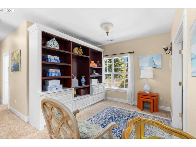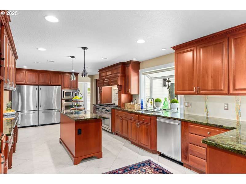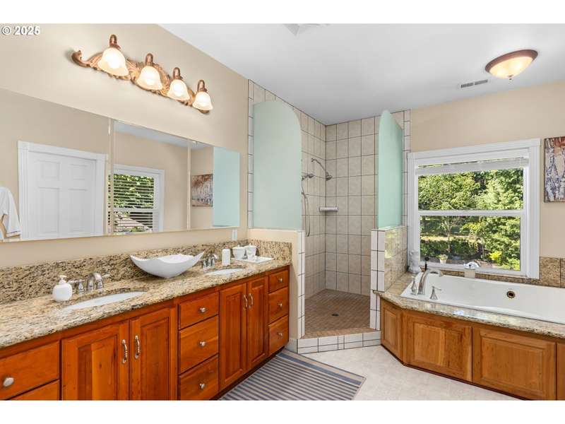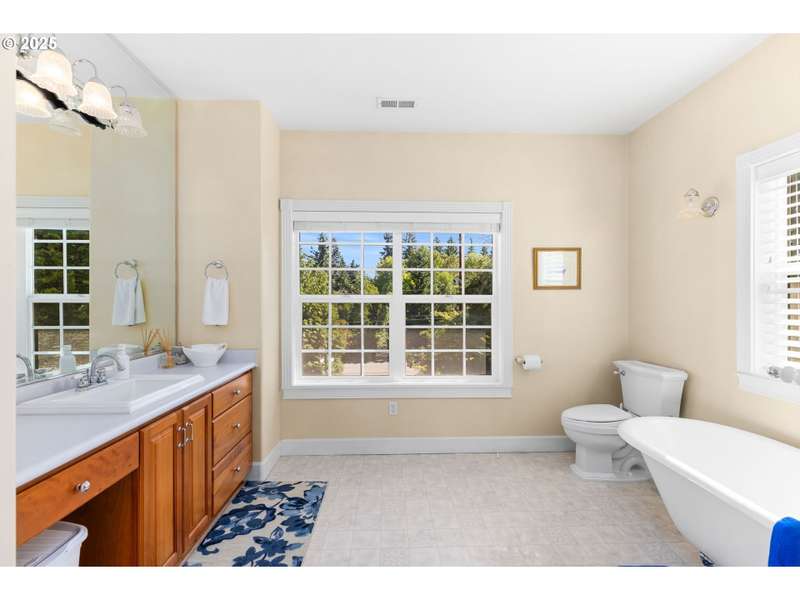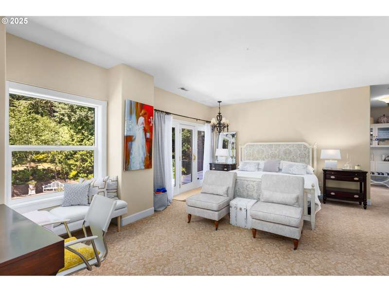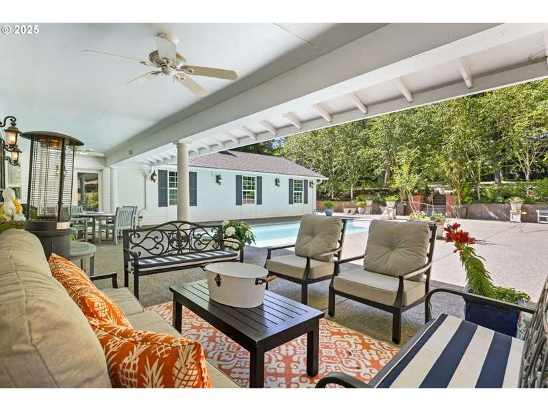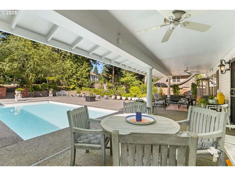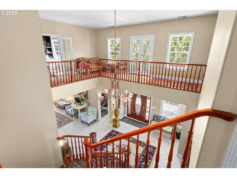 OPEN TUESDAY JULY 22ND FROM 11AM TO 1PM. Set back on a beautifully landscaped lot with a newer garden design and circular driveway, this impressive traditional residence offers timeless style and modern comfort. Nestled on 1.03 acres, the home features an attached 3-car garage and a serene, park-like backyard with a sparkling pool—perfect for entertaining or quiet relaxation. The expansive grounds provide ample room for play or potential development of an ADU or separate guest house; buyer to do due diligence. Inside, a dramatic foyer with soaring ceilings opens to a second-floor wraparound balcony, creating an immediate sense of grandeur. The classic layout includes a formal living room, elegant dining room, and a cozy reading nook—all seamlessly flowing into the heart of the home. The oversized entertainer’s kitchen is a showstopper, complete with high-end appliances, casual dining space, and a spacious family room that opens to a covered patio. From here, enjoy panoramic views of the lush garden, pool, and surrounding property. The generous owner's suite is a private retreat featuring a fireplace, a sun-filled dressing room, and a spa-inspired bathroom with a walk-in shower and soaking tub. Upstairs, you'll find two additional bedrooms, a full bath, and a highly desirable home office with abundant natural light. One of the bedrooms is ideally located on the main floor, perfect for guests, in laws, or aging in place. The unfinished lower level offers endless possibilities—whether you envision a game room, home theater, wine cellar, or ample storage space. Located just minutes from Lake Oswego’s renowned dining, shopping, top-rated schools, and Oswego Lake Country Club, this property is a rare opportunity to own a slice of classic luxury with room to grow.