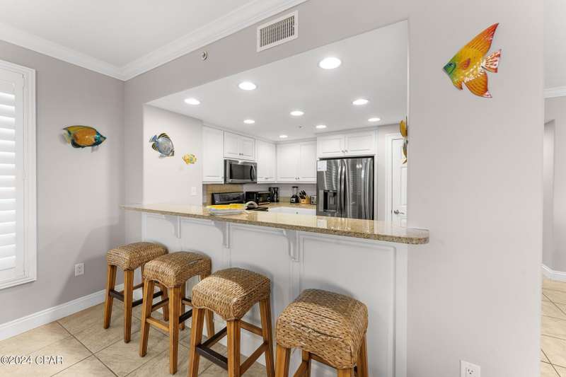 Coastal Luxury at Treasure Island Resort - Ground Floor Gulf-Front PenthouseExperience coastal living at its finest with this beautifully appointed, ground-floor penthouse unit in the highly sought-after Treasure Island Resort. This fully furnished 3-bedroom, 2-bath condo offers stunning Gulf views and is projected to generate over $100K in annual rental income. The unit stays booked solid, so showings are best on turn days--typically Saturdays after 2 PM.A rare and valuable feature of the ground-floor units is the private balcony gate, providing direct access to the pool deck, hot tub, and beach--no elevator needed. Inside, you'll find an open-concept living, kitchen, and dining area filled with natural light thanks to oversized picture windows and floor-to-ceiling sliding glass doors.The Gulf-front primary suite includes private balcony access, a spacious en suite bath with double vanities, a separate walk-in shower, water closet, and large closet. Both guest bedrooms accommodate king beds and also feature private balcony access via sliding glass doors--ideal for guests or family.Additional highlights include:Private balcony rinse-off showerAssigned, covered garage parkingDirect pool and beach access--no stairs or elevator necessaryResort amenities: Heated pool (seasonal), hot tub, grilling area, fitness center, and a community roomThis is turnkey luxury with strong rental potential and unbeatable convenience. Don't miss your chance to own one of the best-positioned units in Treasure Island.