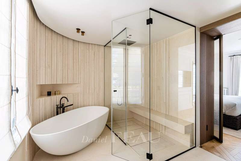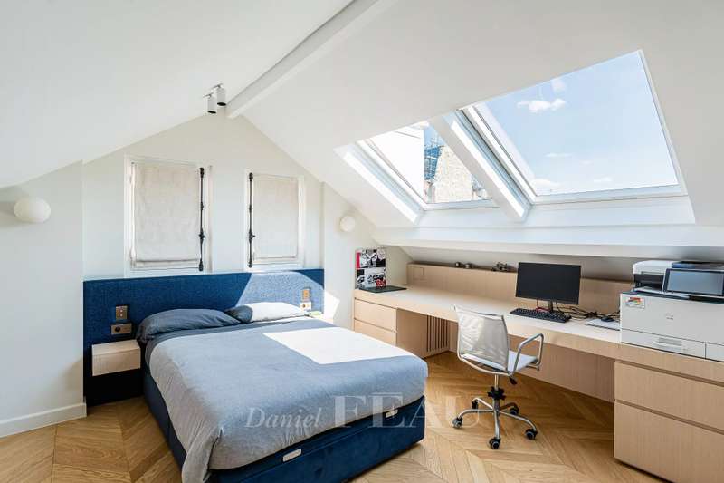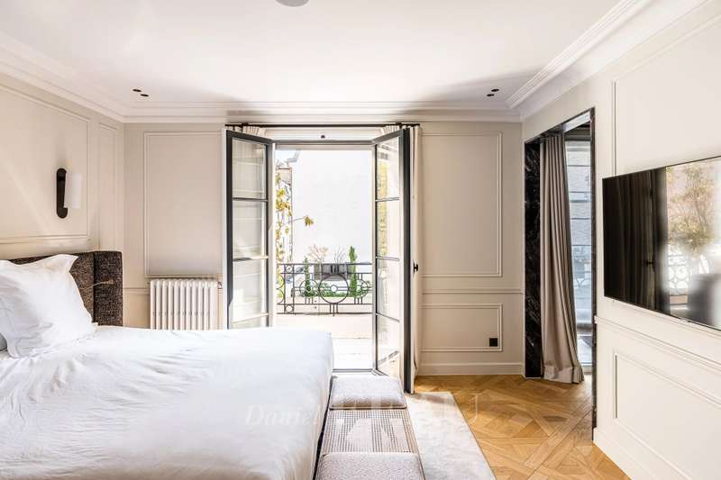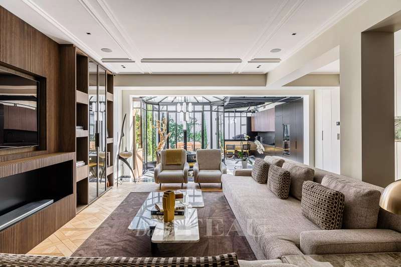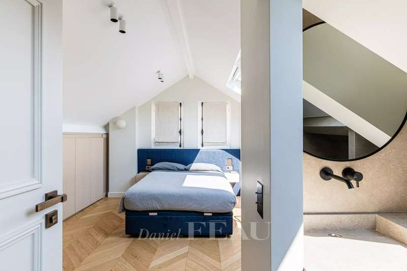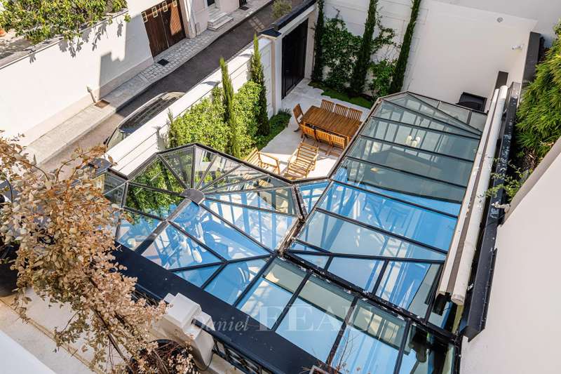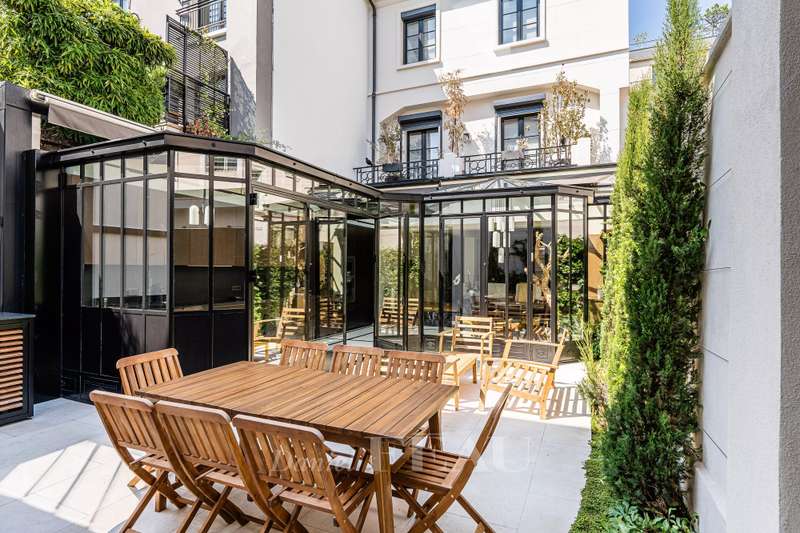 This near 210 sqm dual-aspect Town House is located in the heart of the Sablons neighbourhood near the shops, the schools and the transport networks. Meticulously renovated throughout by a renowned interior decorator, it includes a spacious living/reception room with a fireplace, and a delightful conservatory with a dining room and open-plan kitchen opening onto a leafy courtyard with a summer kitchen and al fresco dining facilities. Upstairs is a master suite with a bath and shower room with a wc, and a dressing room. This opens onto a south-facing balcony/terrace. The top floor comprises two bedrooms, a bathroom, a separate wc, and a third attic bedroom with a shower room and wc. The fully fitted basement comprises a utility room with storage space, technical premises and a wc. Air conditioning, home automation. With a parking space in a secure private street accessed directly from the house. A turnkey family home on the north-western edge of the capital. Love at first sight.