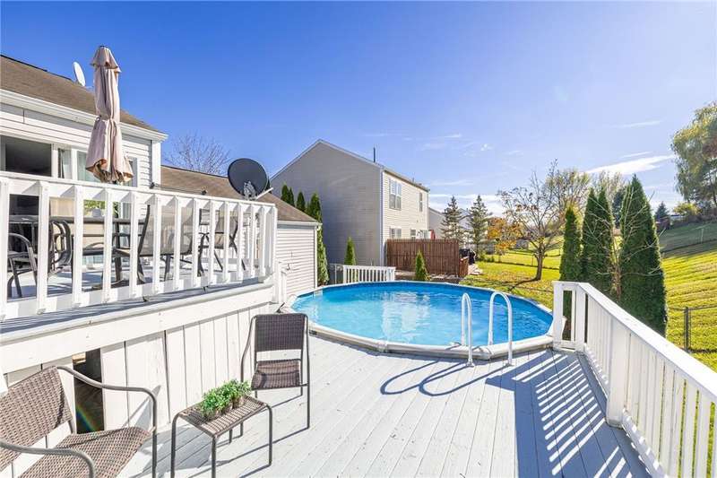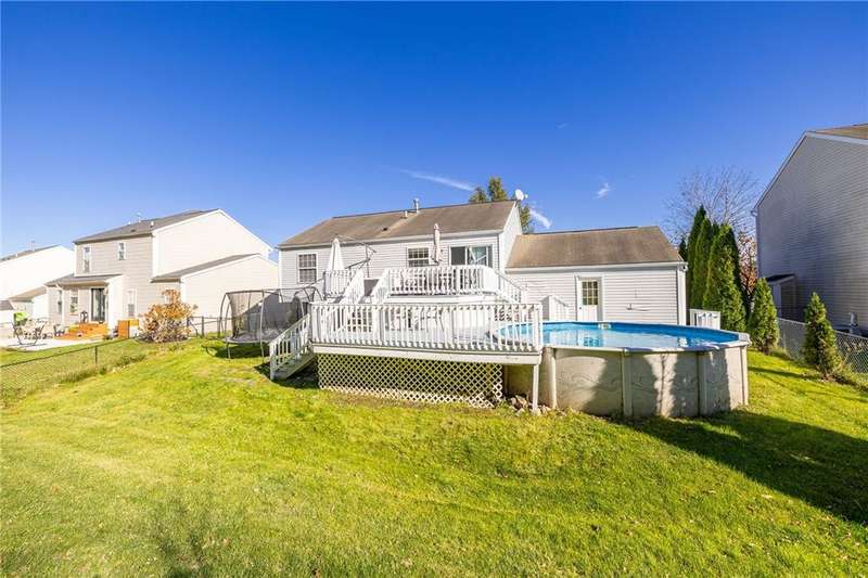 Welcome to 3333 Eagles Roost Lane! This 4 bed, 2 full bath split level home is located right off the Gananda Pkwy in the Penfield School District! Enjoy easy living with an open floor plan that's loaded with natural light! Celebrate all of your occasions in the modern dining area open to the kitchen and living room! The kitchen includes beautiful cabinetry with stainless appliances and a large pantry. Just down the hall is the Primary suite with oversized closets, and two more good sized bedrooms with a full bath! On chilly winter days, cozy up to a gas burning fireplace in the large family room on the lower level that includes another 554 sqft! Incredible space for a 4th bedroom or office to make your own with a full bath that has a walk-in shower! Enjoy your evenings on the 3-tierd deck overlooking a private backyard while family and friends take a dip in the pool! Huge two car garage and under the deck storage is perfect to tuck away outdoor equipment. Desirable location close to parks, shopping and restaurants and so much more! This house is a must see! Make your appointment today! Delayed showings begin on 11/1/25 @ 11:30am. No negotiations until 11/5/25 @ 12:00pm.