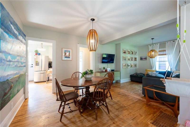 This inviting home feels larger than it is, offering a smart layout and plenty of flexible living space. Nestled on a nicely sized lot along a quiet street, it also features an oversized 2.5-stall garage with extra parking on the concrete pad next to the garage. A welcoming front porch sets the tone, leading into the main level with hardwood flooring, fresh paint colors, a comfortable living room, dining area, updated kitchen, main floor bedroom, and full bath. Upstairs, a versatile space can serve as a bedroom, office, or flex room. The remodeled lower level adds even more value with a bedroom featuring a walk-in closet, a beautifully updated ¾ bath, laundry room, and additional storage. With a new roof in 2023 and thoughtful updates throughout, this home is truly move-in ready. Enjoy the charm, flexibility, and function—all in a wonderful location!