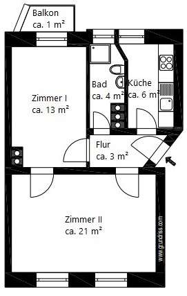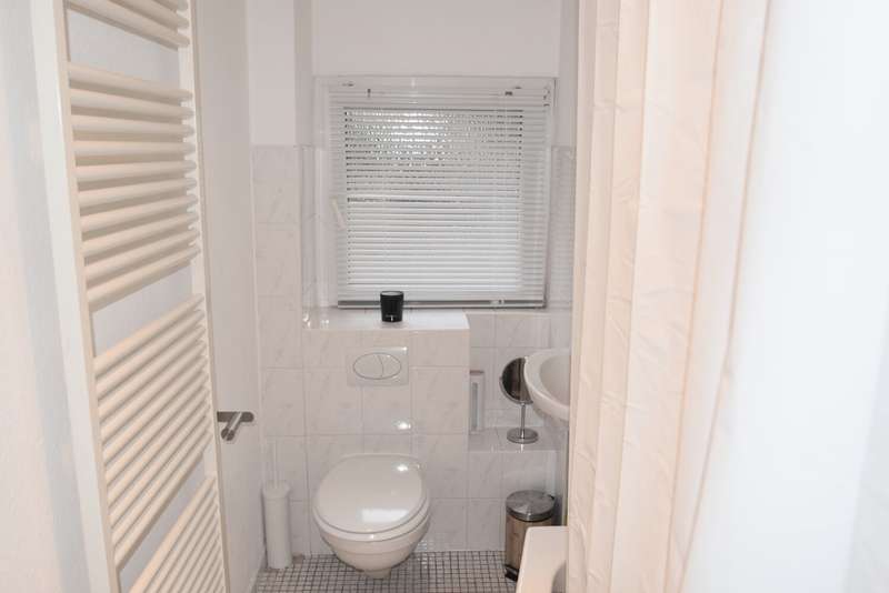 The two-room apartment is located on the first floor of a period building from 1910. The façade was lovingly renovated in 2014 with great attention to detail. A small hallway leads to the living room, kitchen, bathroom and bedroom. The living room is approximately 22 m² in size and has an old real wood floor, which emphasizes the charm of this old building apartment. The bedroom is quietly located to the rear and from there you can access the small, walled balcony. Here you can start the day in summer with a cup of coffee or tea or end it with a glass of wine. The small daylight bathroom is equipped with a shower/bathtub. The fitted kitchen has all the necessary appliances and a washing machine. In addition to the cellar room belonging to the apartment, there is a drying room in the basement of the building. A small garden for communal use rounds off the offer.