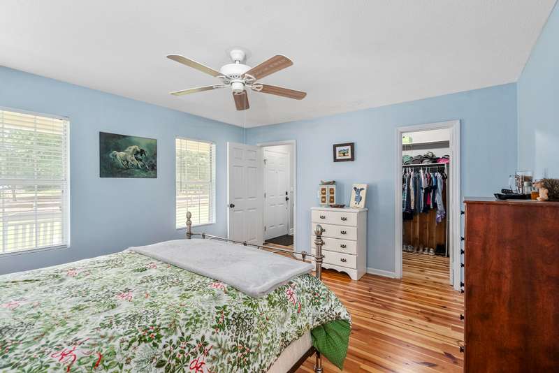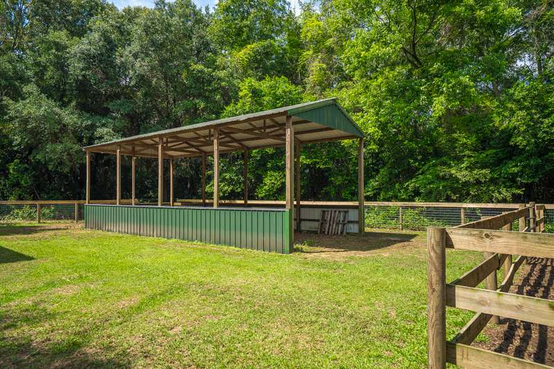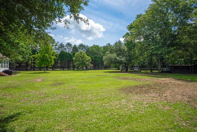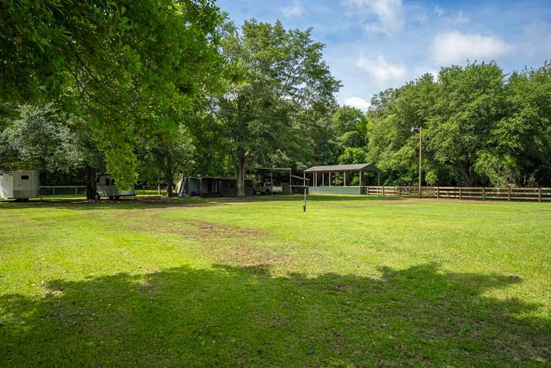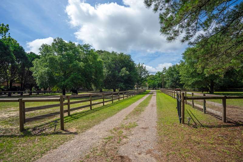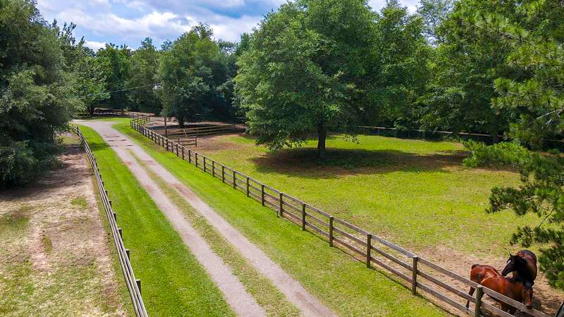 Perfect combination of charm, privacy & location is found at the delightful, horse-ready, 6.37 acre property at 8074 Church Street. Tucked privately on a sandy lane off Old Dibble Road, you will love the easy access to Southside shopping; downtown and equestrian training facilities & venues, including Sporting Days, The Vista, Jumping Branch & Full Gallop Farms, equine clinics, tack stores and a short drive to Stableview. Equestrians will appreciate the 3 fenced paddocks, woodland trails & ample space for a jump field and dressage arena, all set within beautifully landscaped grounds with stunning live oaks that add to the peaceful, low country ambiance. The inviting home welcomes you with its farmhouse style. From the spacious front porch step inside to the delightfully updated, 2072 sq. ft. home with handsome pine floors, newer baths & a wonderful kitchen with butcher block counters, farmhouse sink, stainless appliances, uplit pantry & breakfast area. The generous living room features a ventless gas fireplace and access to an enclosed sunporch overlooking the grassy backyard & riding area. The main floor primary suite features a walk-in closet and generous bath with 2 separate vanities and linen storage. The main floor also features a full bath and laundry room steps to the garage and up to the bonus room, that can flex as a 4th bedroom, office or playroom. A second staircase leads to 2 guest bedrooms, a shared hall bath & access to great walk-in attic storage. The home's layout makes it easy and comfortable to host visiting friends and family with privacy for all! You will love the outdoor space the current owners have created to enjoy living with your dogs, horses & farm animals. The property is fully fenced and enclosed, enabling pets to safely have full run of the farm. The horses have large paddocks for roaming, a grass field for work & a trail system for a quiet ride or sunset walk. You also will find a covered shed for RV/trailer parking, currently used for hay storage, and a second storage shed with covered parking and a screened porch that has served well as an efficient, tack/storage area. The home also has an attached one-car garage with plenty of space for an ATV and boot bench area. This sweet, tranquil farm is surrounded by scenic woodlands - a truly wonderful property and opportunity to enjoy peace, comfort & convenience! Call for your confirmed appointment today!