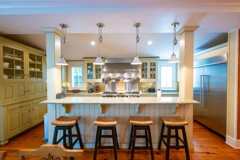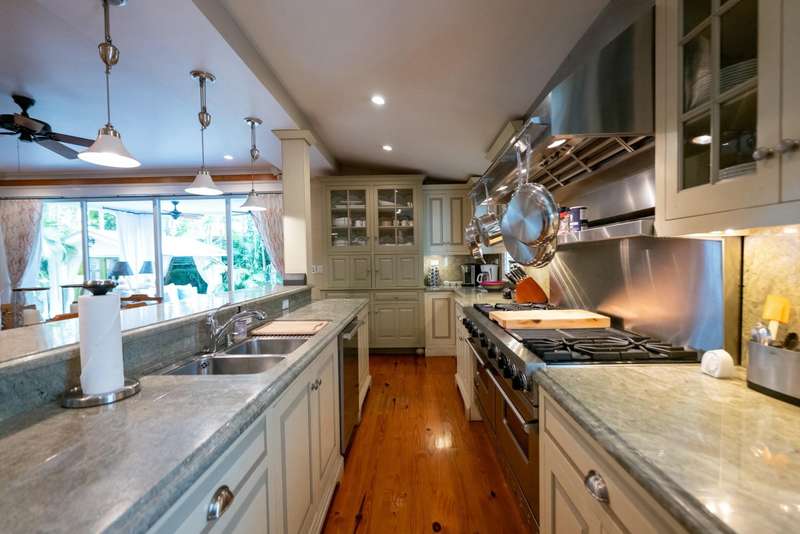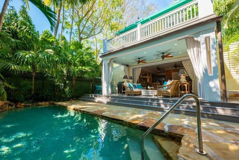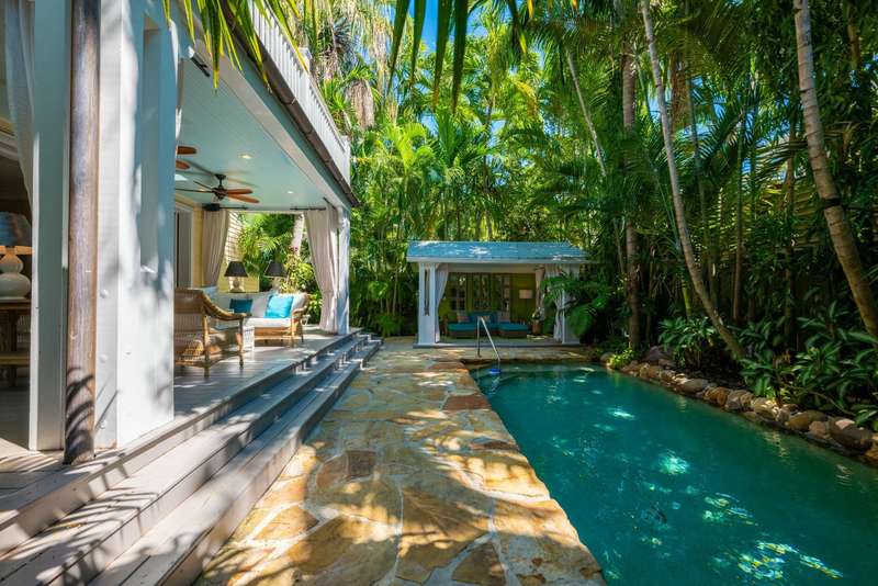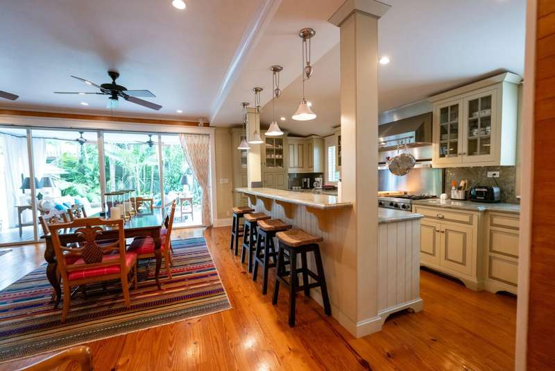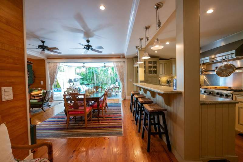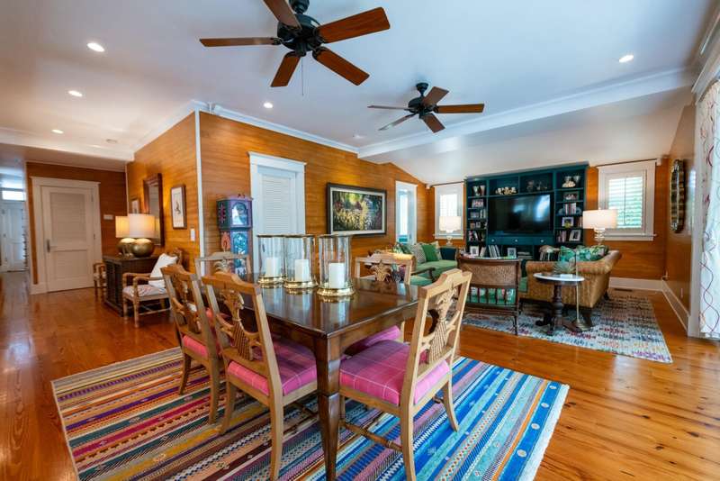 This stunning Gingerbread-style home seamlessly blends historic charm with modern luxury right in the heart of Old Town . A covered wraparound porch welcomes you into a bright, window-lined foyer, leading to an elegant living and dining area. Throughout, gorgeous pine floors and walls highlight the home's timeless character.The open gourmet kitchen, featuring high-end appliances, flows into the living room and out to the covered loggia through vanishing pocket doors, creating seamless indoor-outdoor living. With 3 or 4 bedrooms, the main floor offers two en-suite bedrooms + a custom office, while upstairs, a spacious sitting room with a breakfast bar leads to the primary suite, complete with dual closets and a private balcony overlooking the heated pool and lush backyard.Designed for relaxation and entertaining, the large covered back porch offers serene views of the tropical landscaping and tranquil pool waterfall. A gazebo-style outdoor living space expands your backyard retreat and could easily convert back into a guest cottage as it once was.A rolling front gate, off-street parking, and a charming front porch perfect for people-watching complete this exceptional property.