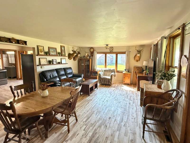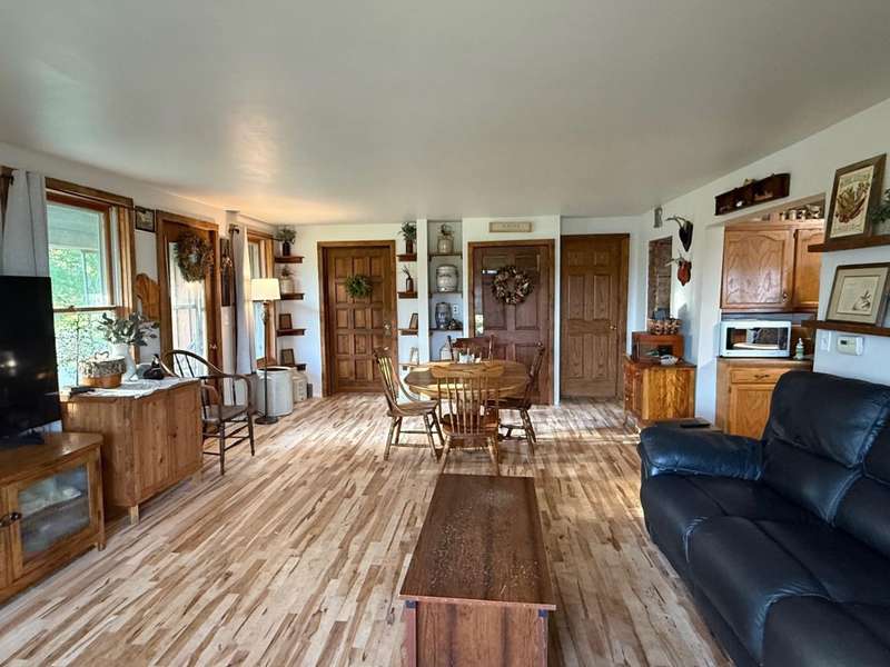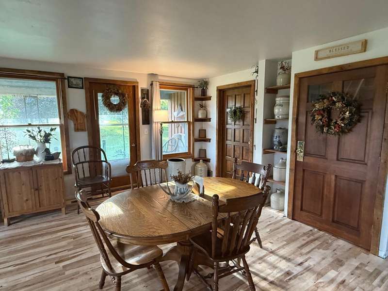 Dreaming of country living?? Perched atop 14 acres of peaceful countryside, this charming 3-bedroom, 1-bath farmhouse offers the perfect blend of rustic appeal and modern updates. Featuring beautiful maple flooring, fresh paint, and plenty of character, the home invites you to relax and unwind. Enjoy the lush grounds with mature trees, fruit trees, and a heated shop—ideal for hobbies or extra storage. Located on a quiet dead-end road, this property provides ultimate privacy and tranquility. A true country retreat with room to grow and make it your own.
